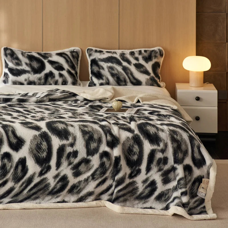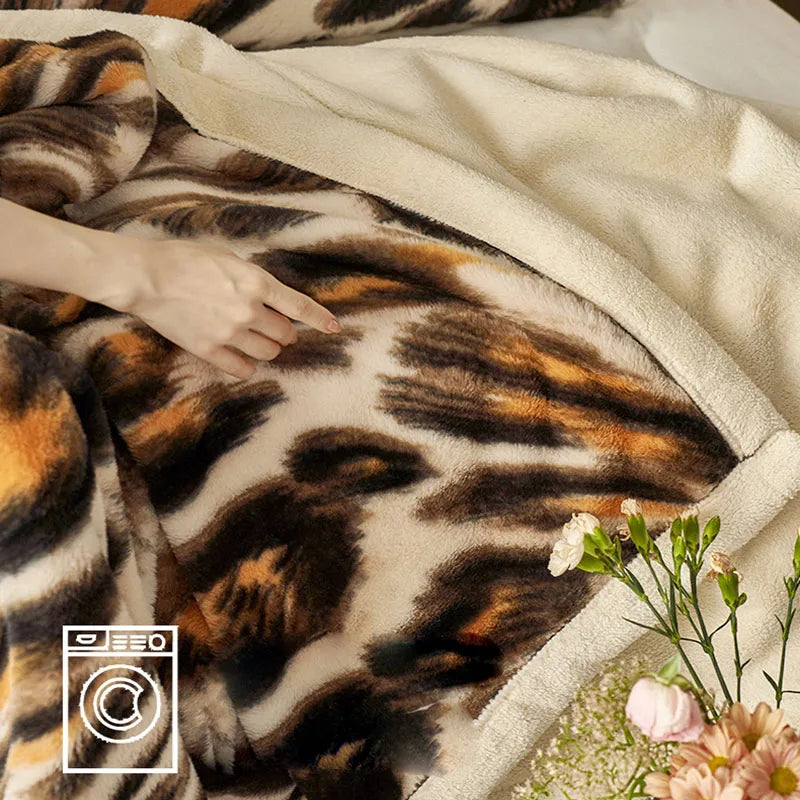 Manta de lujo DecorBites™ con estampado de leopardo y piel de conejo: ideal para la oficina y el sofá, suave al tacto y multifuncional.