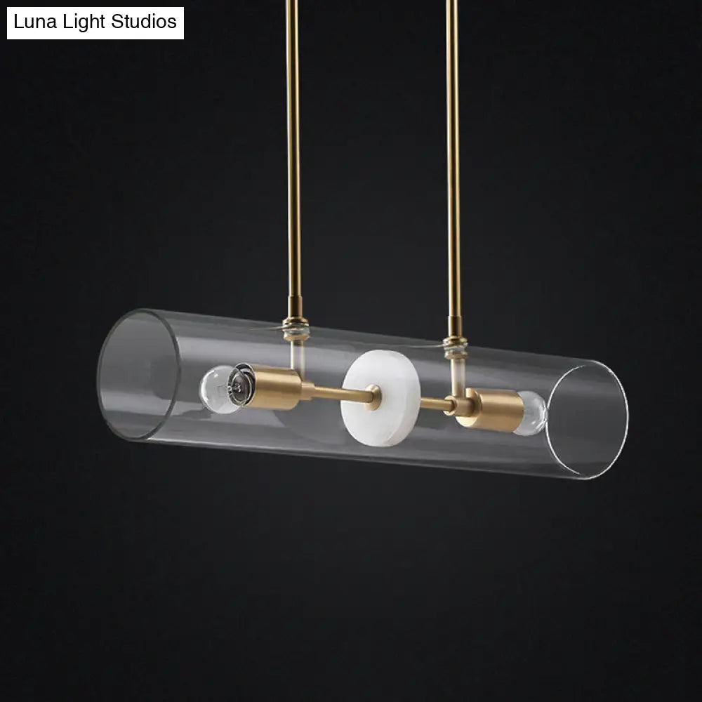 Lámpara colgante minimalista DecorBites™ con acabado en latón y tubos de vidrio transparente - Lámpara de techo suspendida