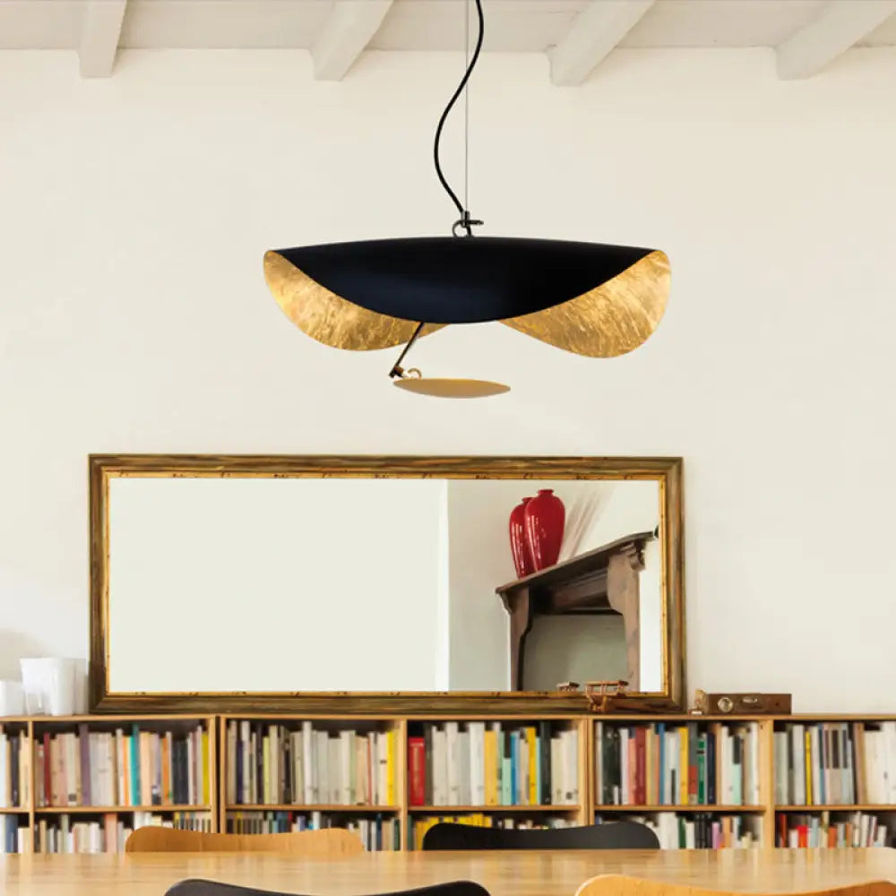 Lámpara colgante moderna de 1 bombilla con pantalla metálica en forma de sombrero - Perfecta para restaurantes