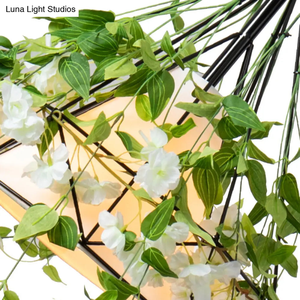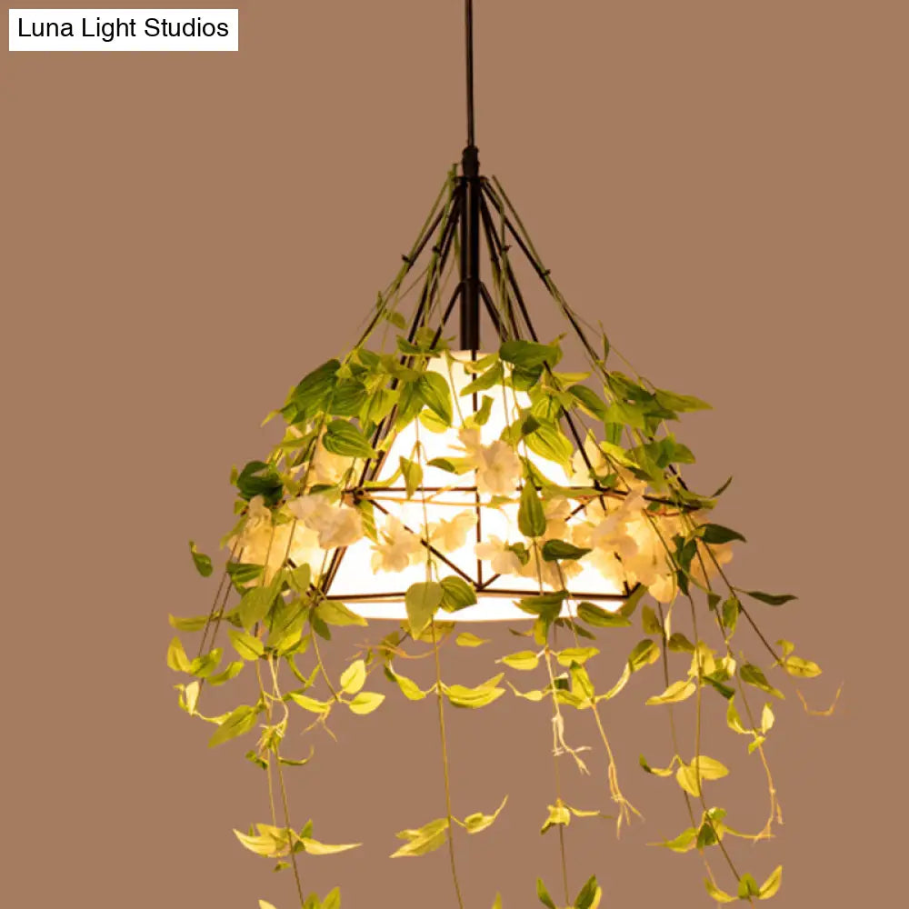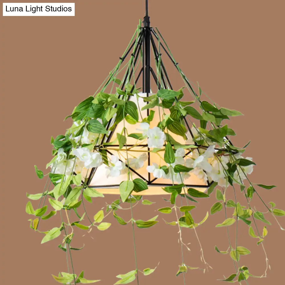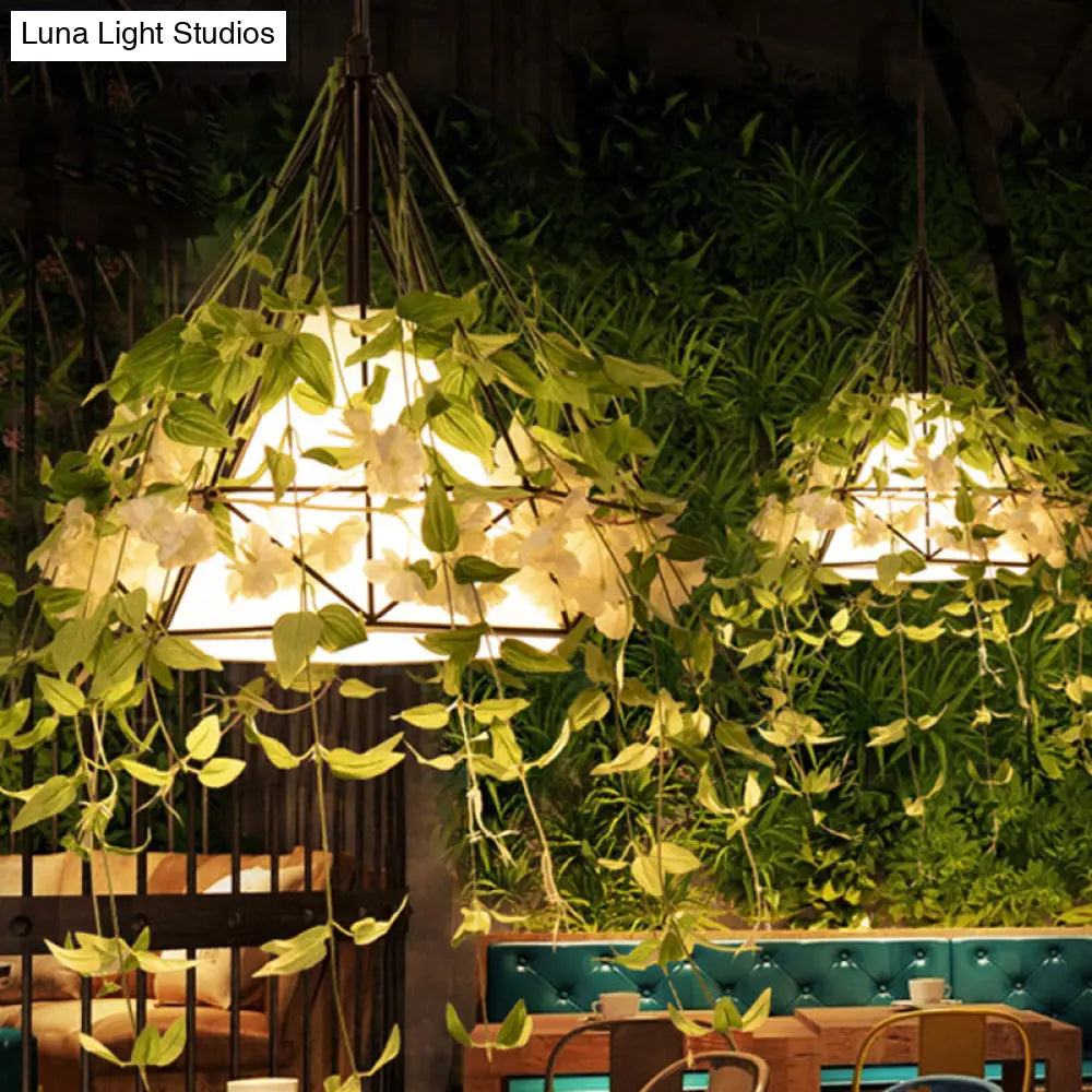 Lámpara colgante de hierro con forma de diamante verde antiguo y pantalla cónica de tela - Lámpara colgante individual para restaurante