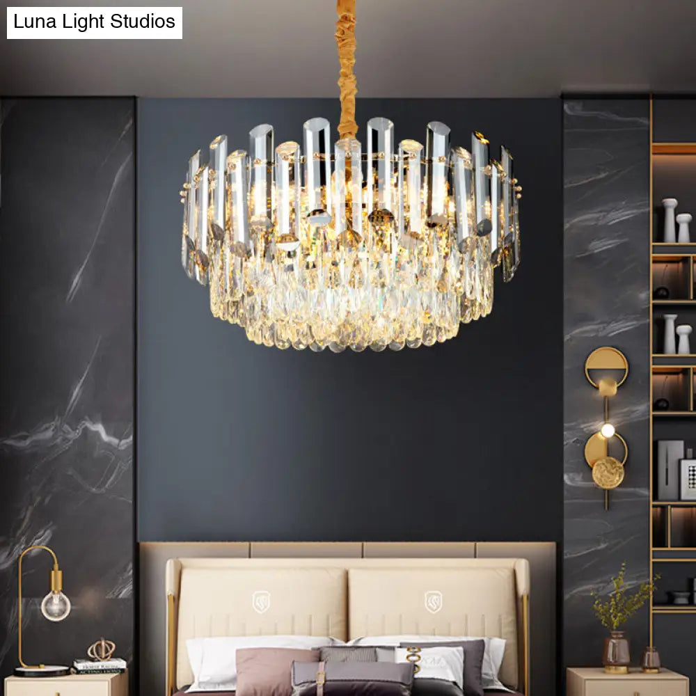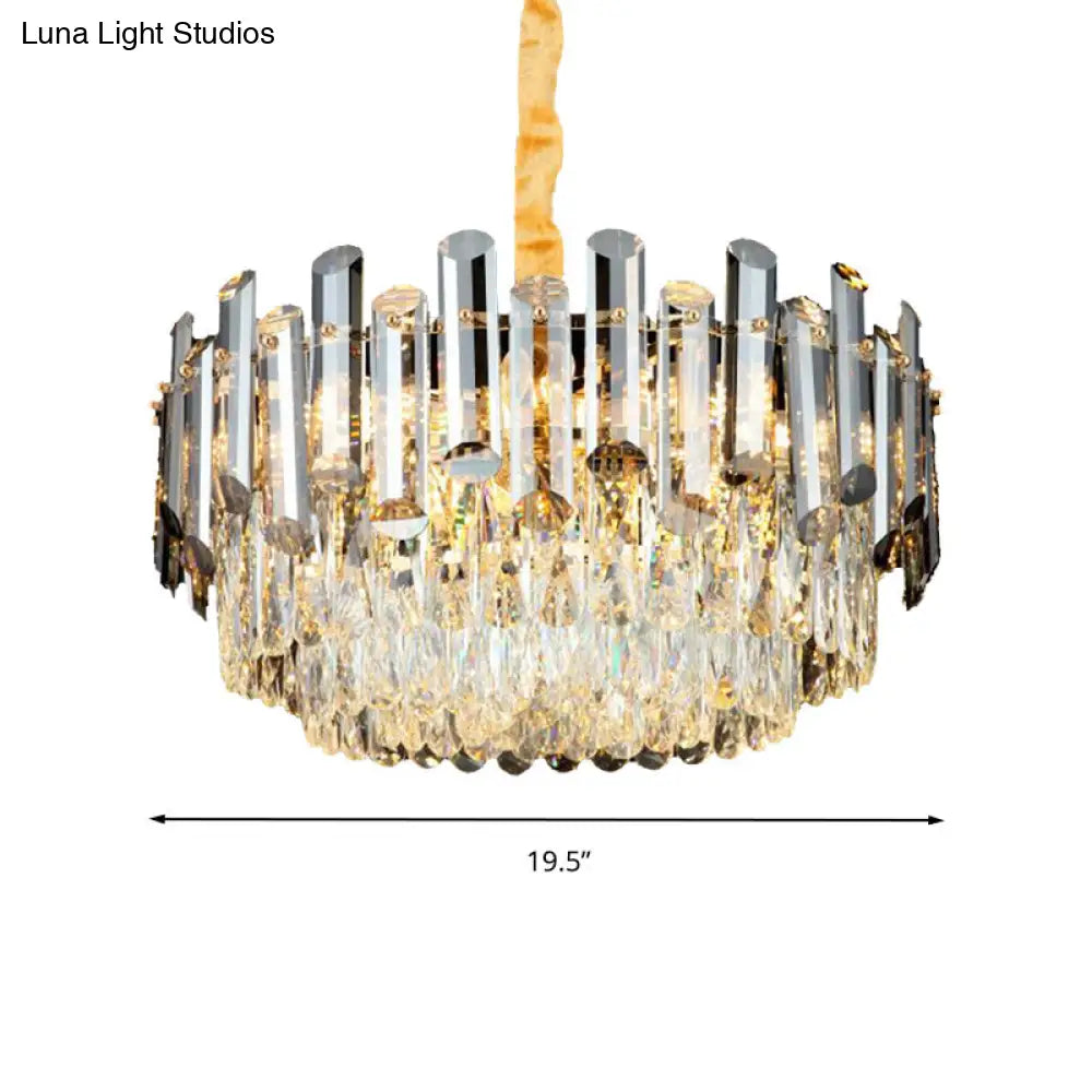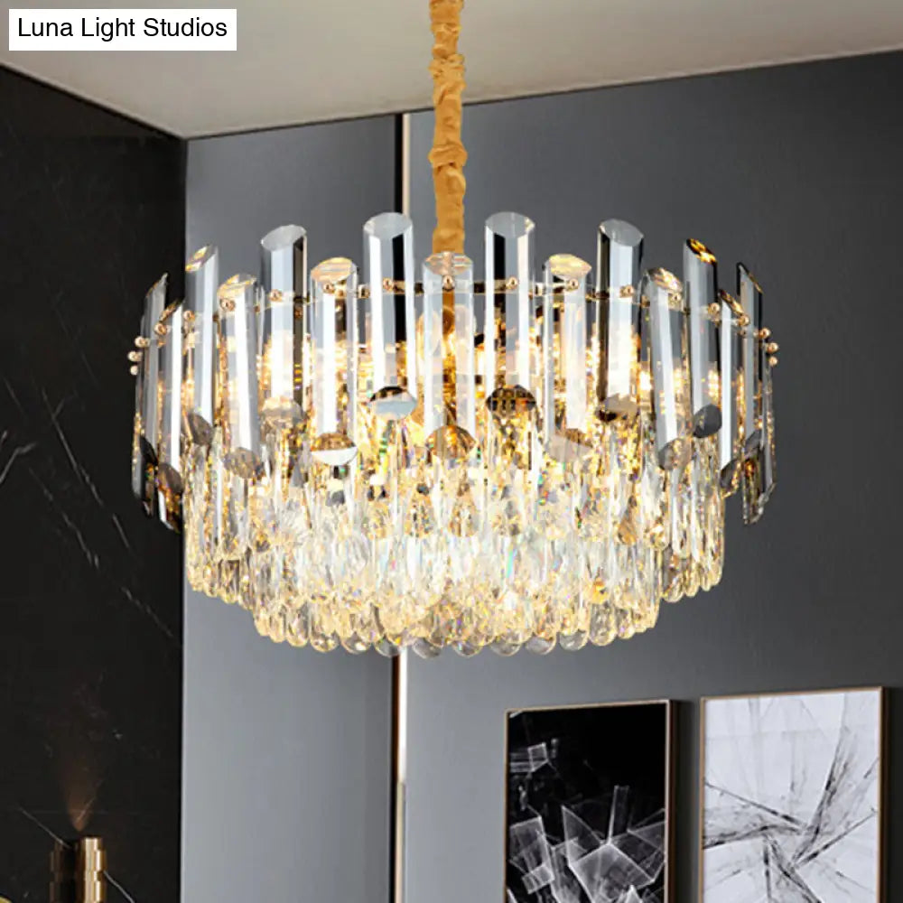 Kit de lámpara colgante de cristal con forma de tambor posmoderno con 10 cabezales de araña de latón
