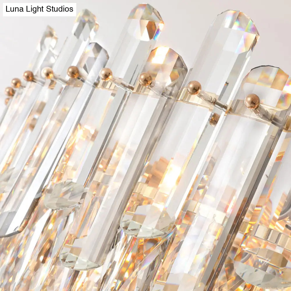 El cristal de la lámpara es de una belleza impactante, aportando una elegancia moderna. La combinación del diseño contemporáneo del dosel redondo ajustable y el acabado de la lámpara le dan un toque posmoderno a la habitación, mientras que el lujo del cristal y sus detalles biselados crean una sensación de exclusividad y estilo.