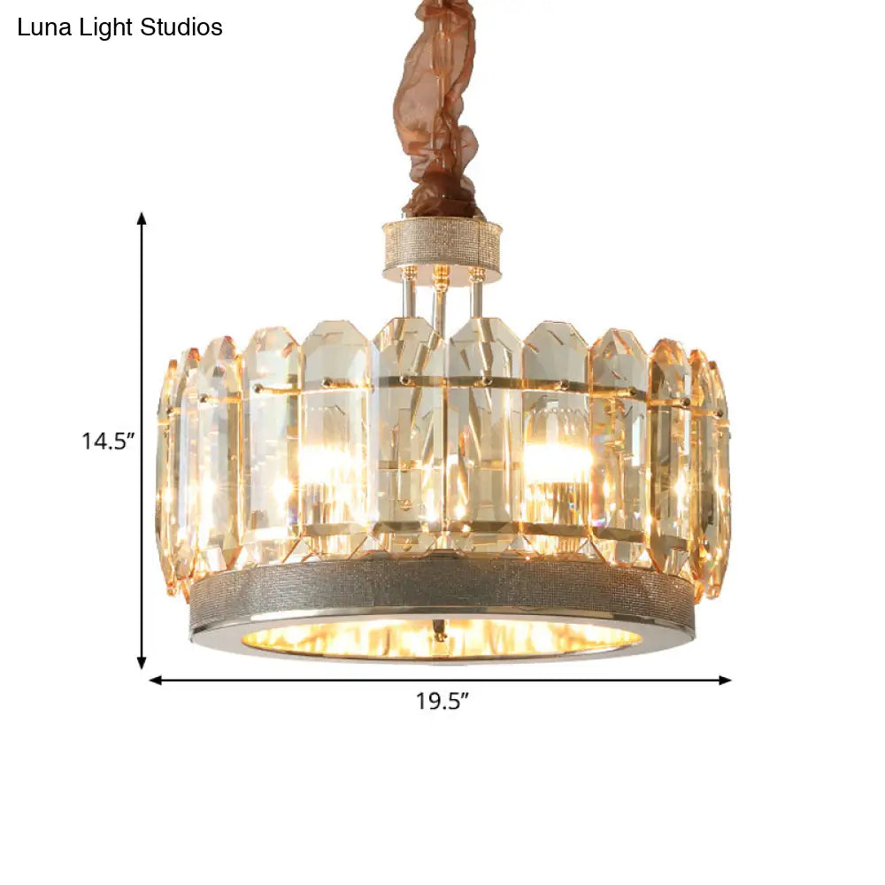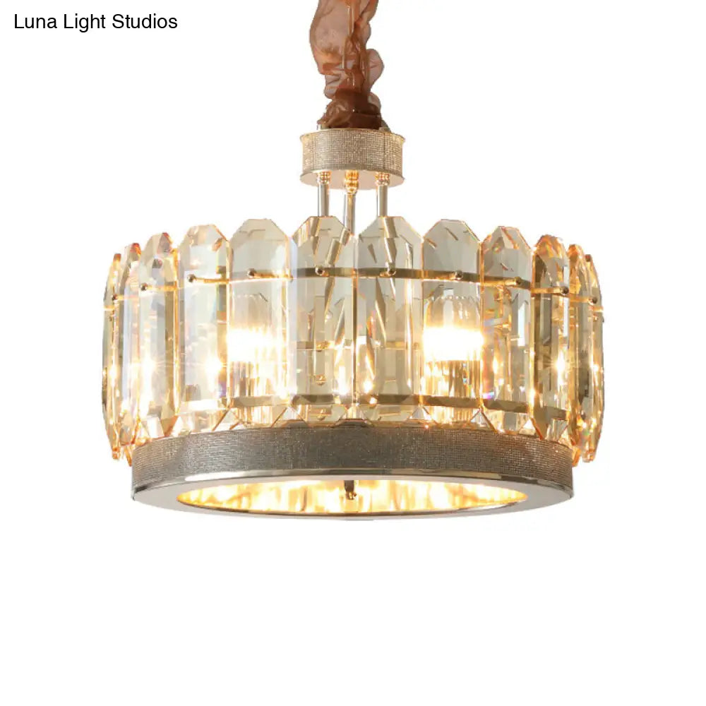 Lámpara de araña contemporánea de bloques de cristal - Lámpara colgante de comedor tipo tambor con acabado gris y 6 cabezas