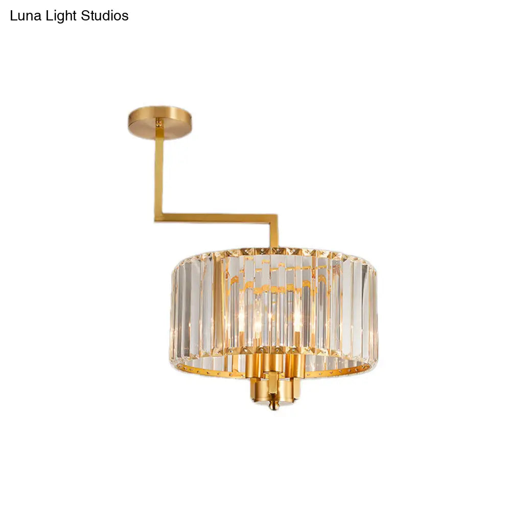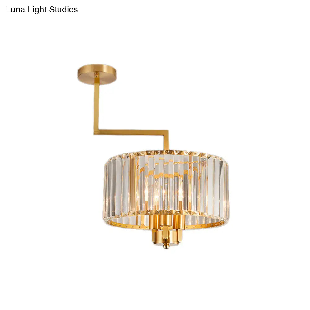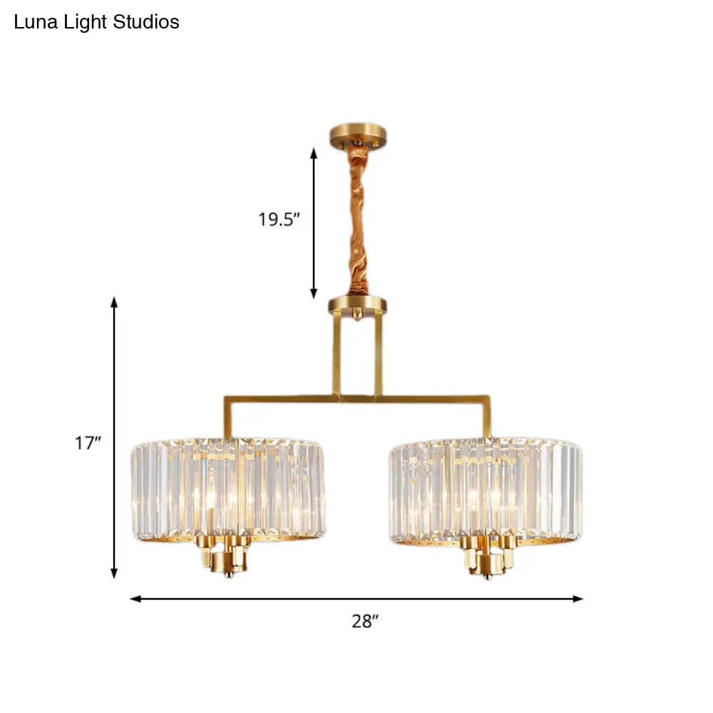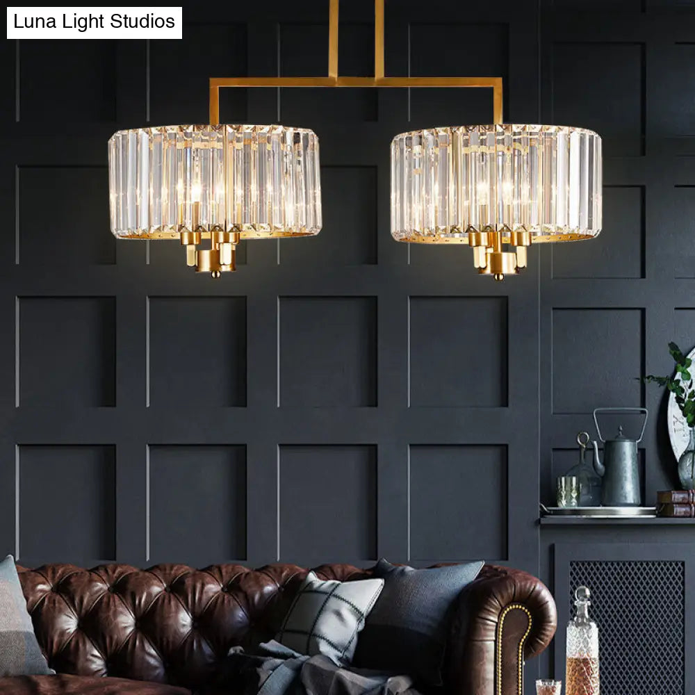 Lámpara de techo contemporánea dorada con forma de tambor y cristales transparentes - Lámpara colgante de 3/6/9 cabezas para sala de estar