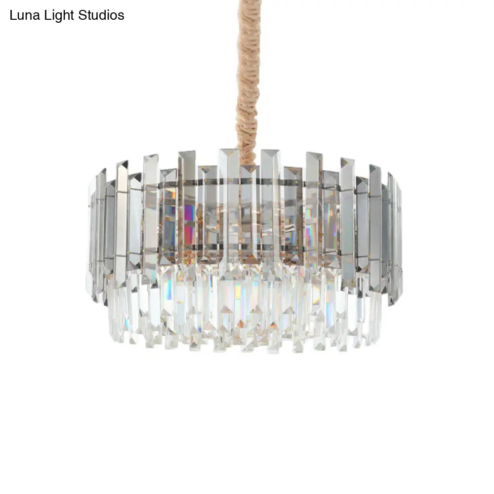 Lámpara de techo modernista de doble capa para comedor con pantallas de cristal transparente y gris humo - Colgante dorado de 9 bombillas
