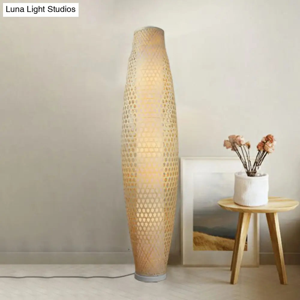 Lámpara de pie Asia Bamboo con 3 cabezales de madera para la sala de estar