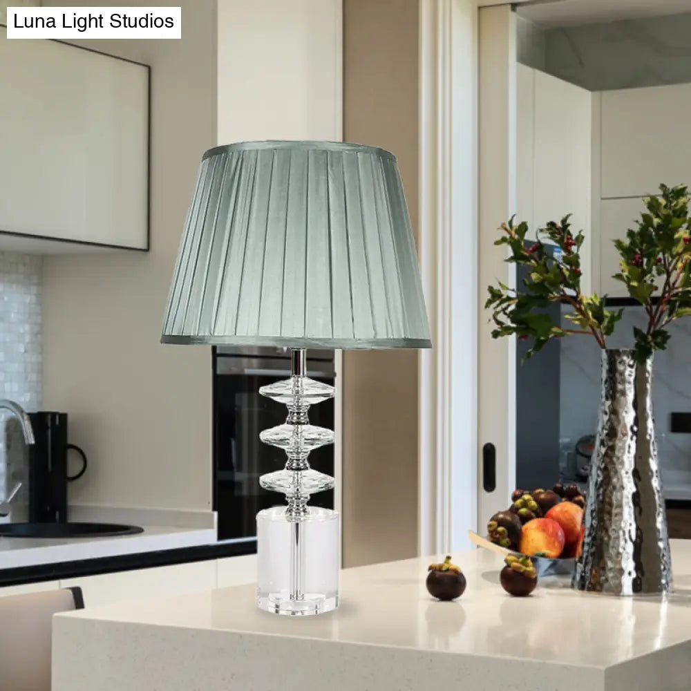 Lámpara de mesa de noche de tela azul con detalle de cristal transparente - Diseño cónico tradicional, 1 luz