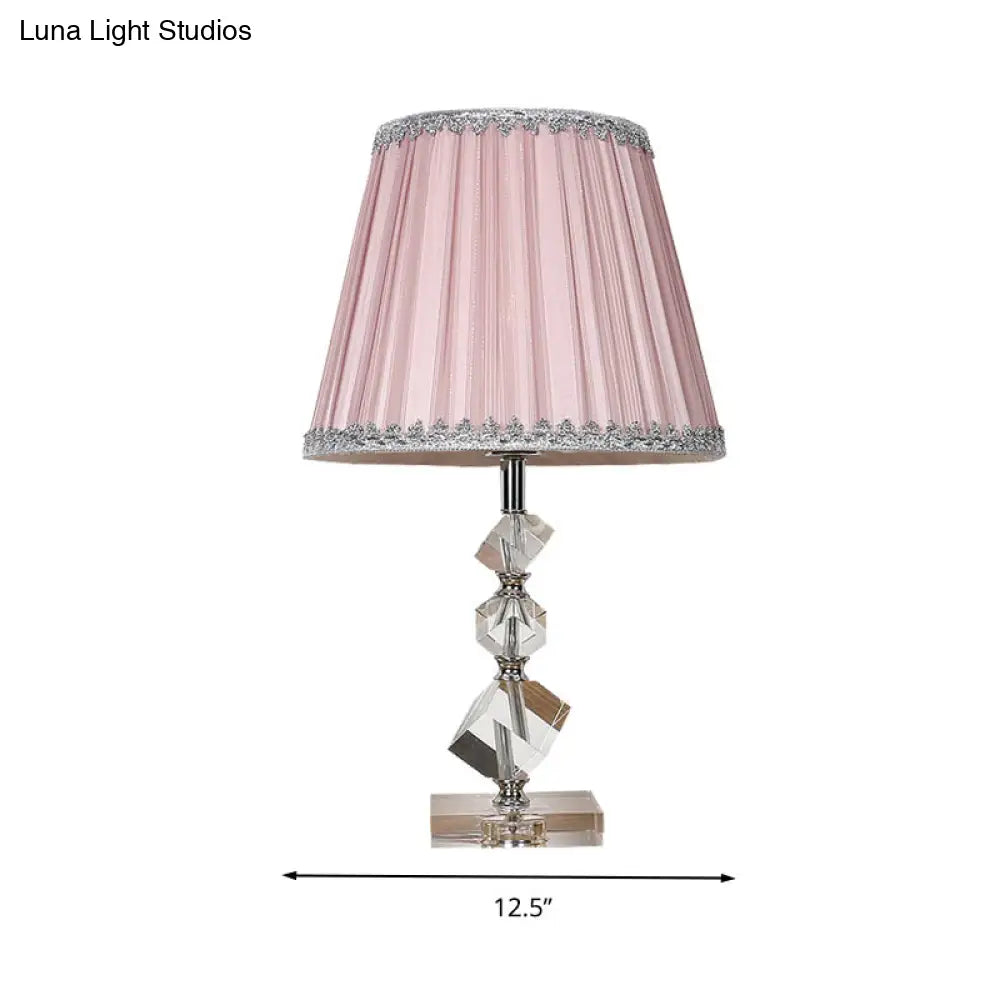 Lámpara de mesa cónica: Lámpara de noche de tela rosa estilo campestre con una luz y base de cristal para dormitorio
