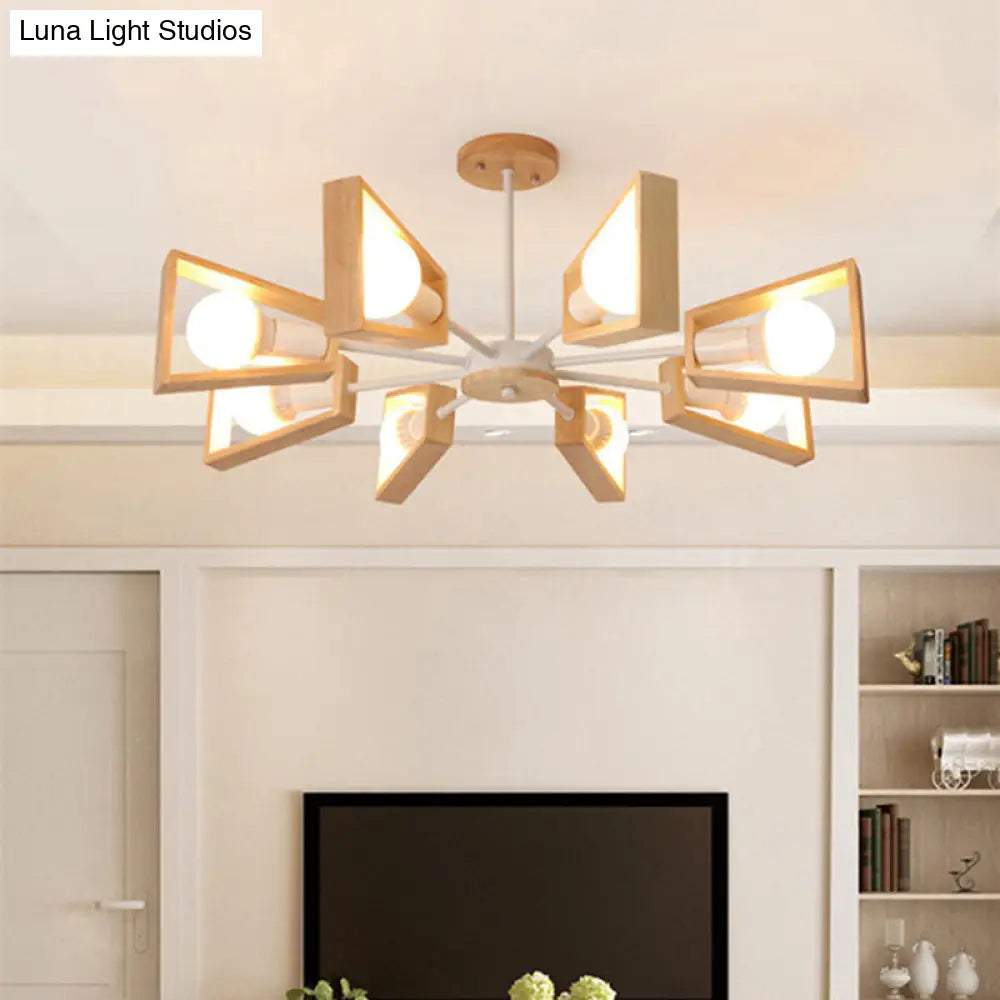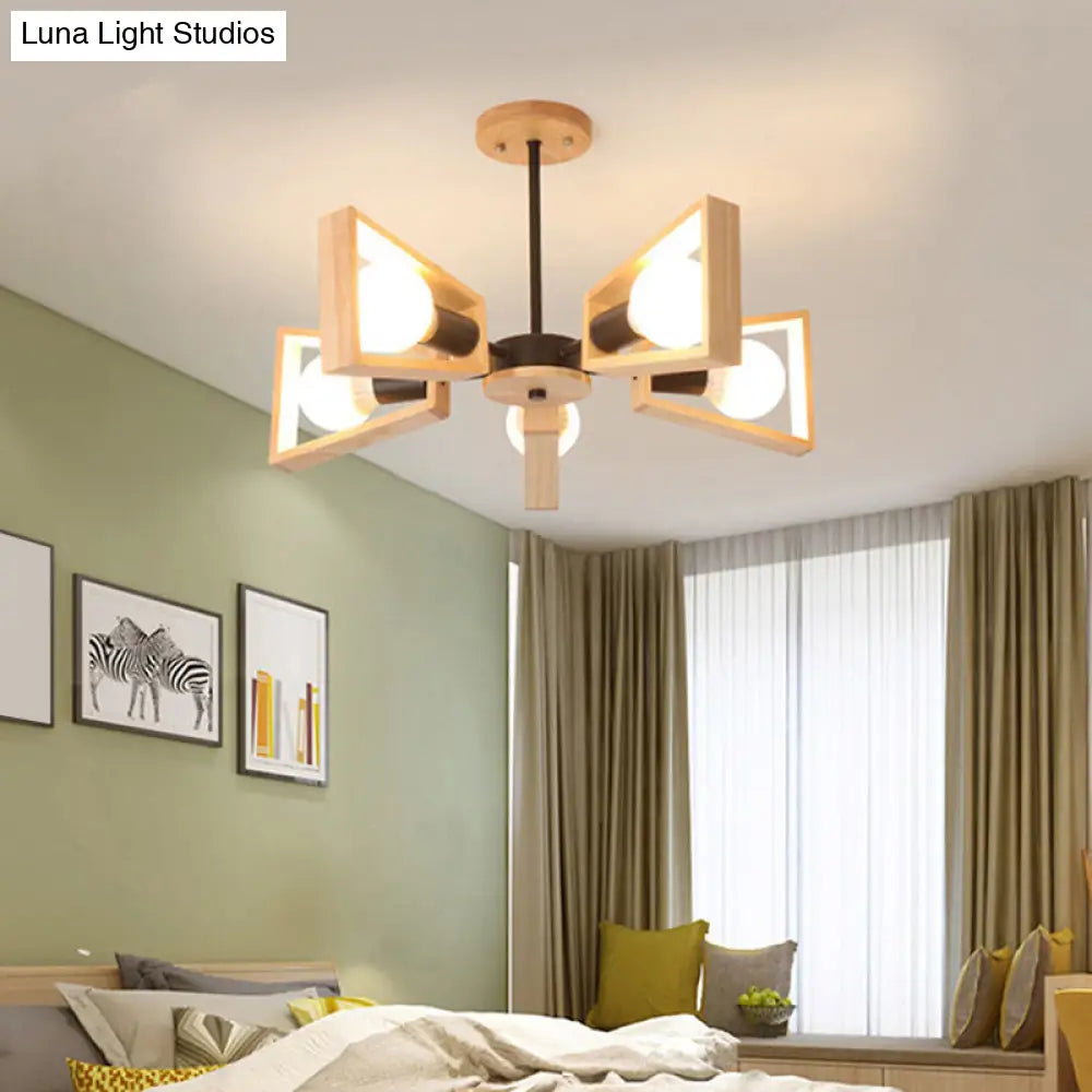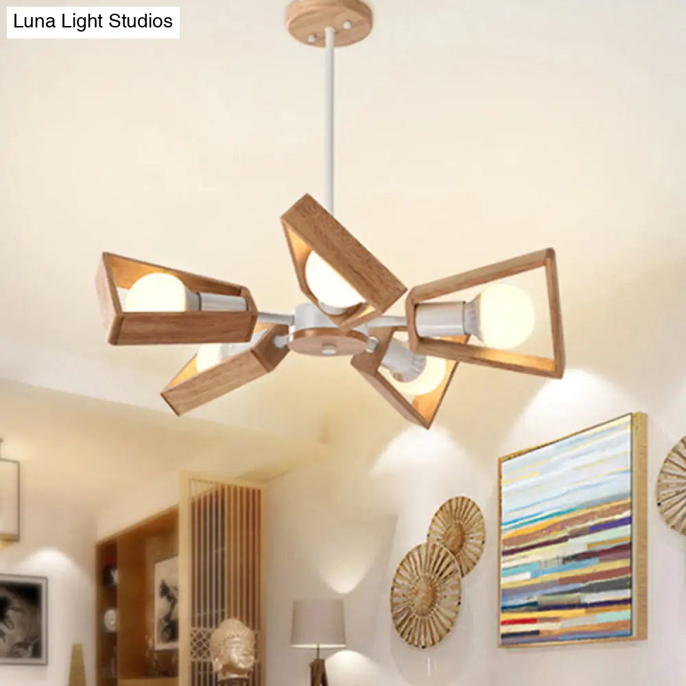 Lámpara de araña nórdica de madera en forma de abanico para iluminación de comedor