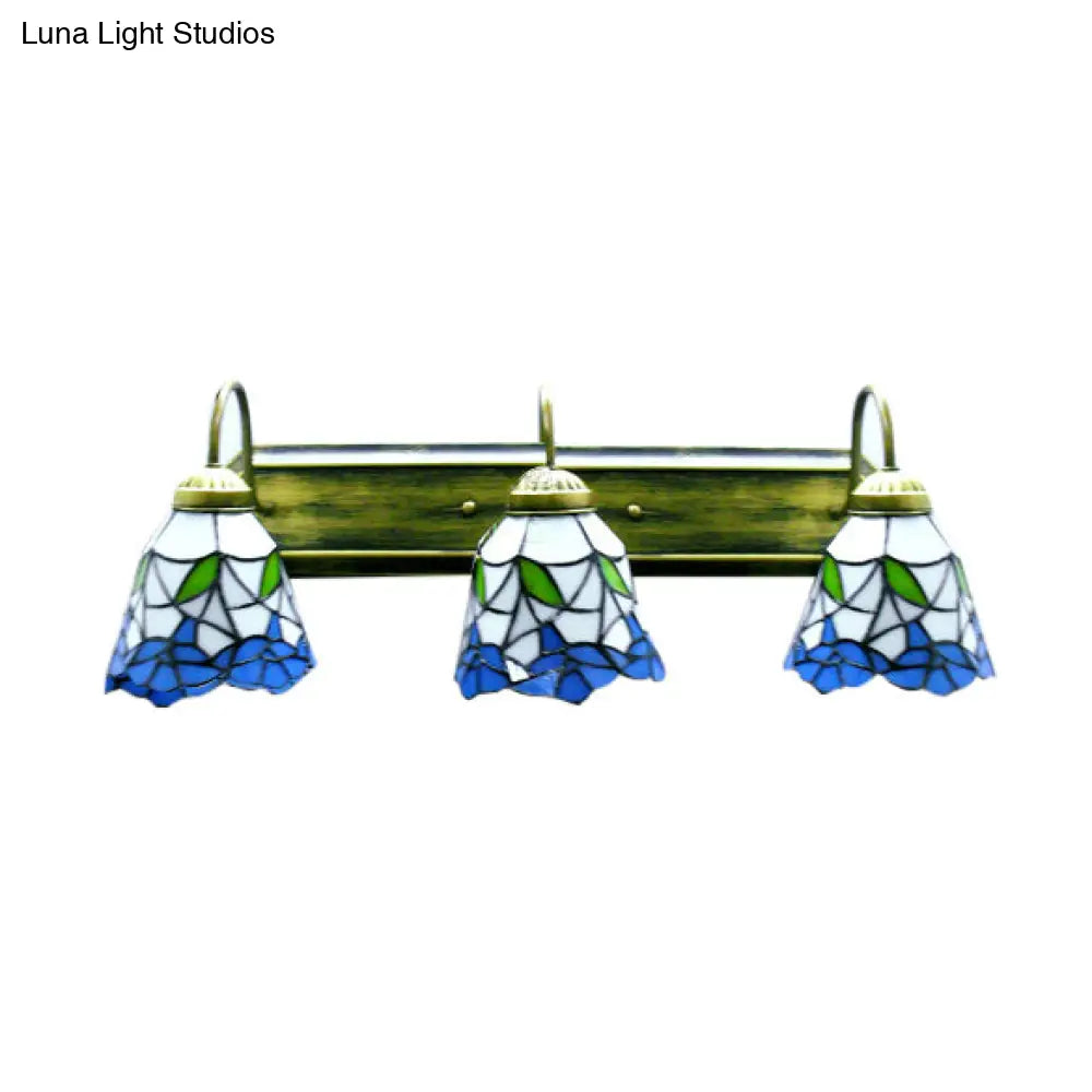 Aplique de pared Tiffany azul y blanco - Lámpara de pared de bronce con 3 cabezales