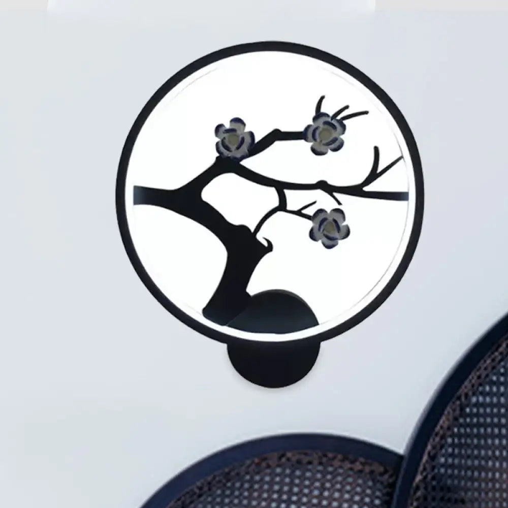 Aplique de pared chino con forma de rama de flor de hierro y luz LED