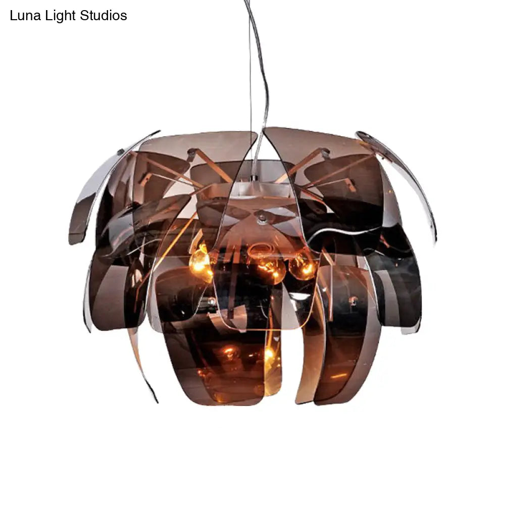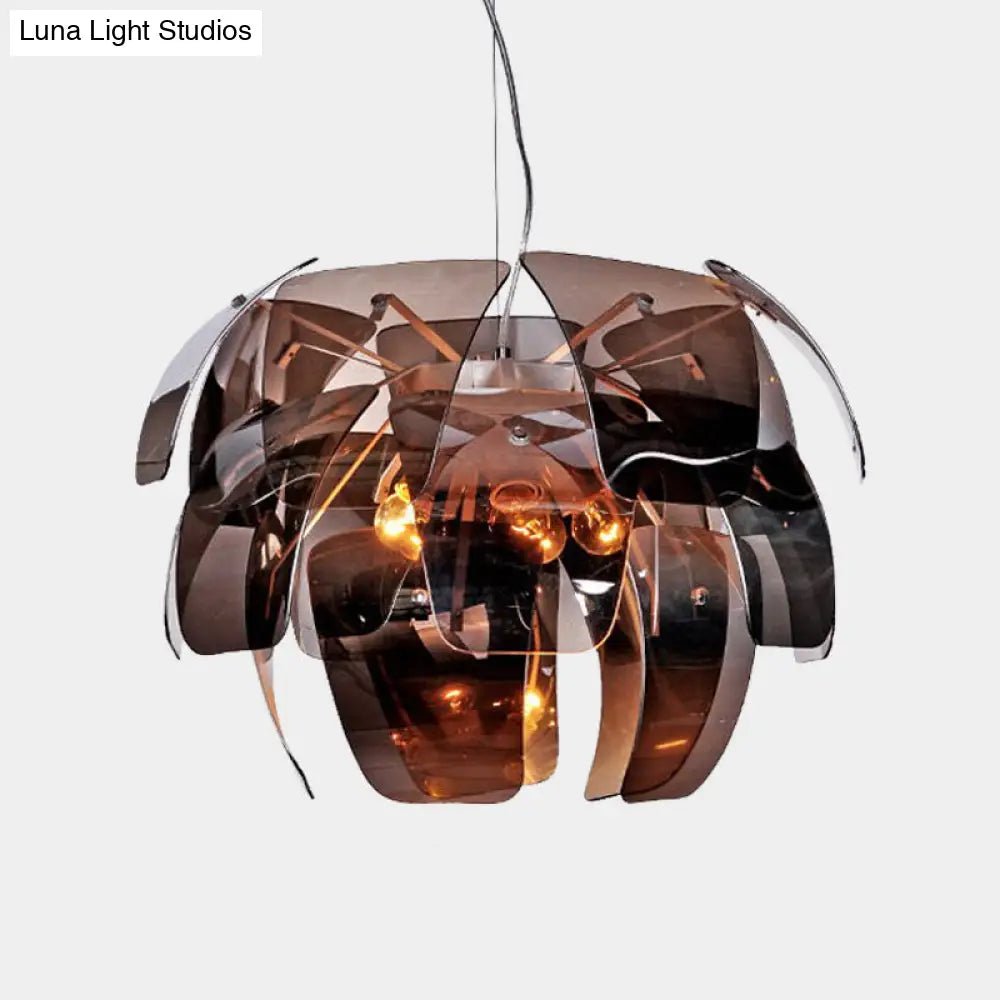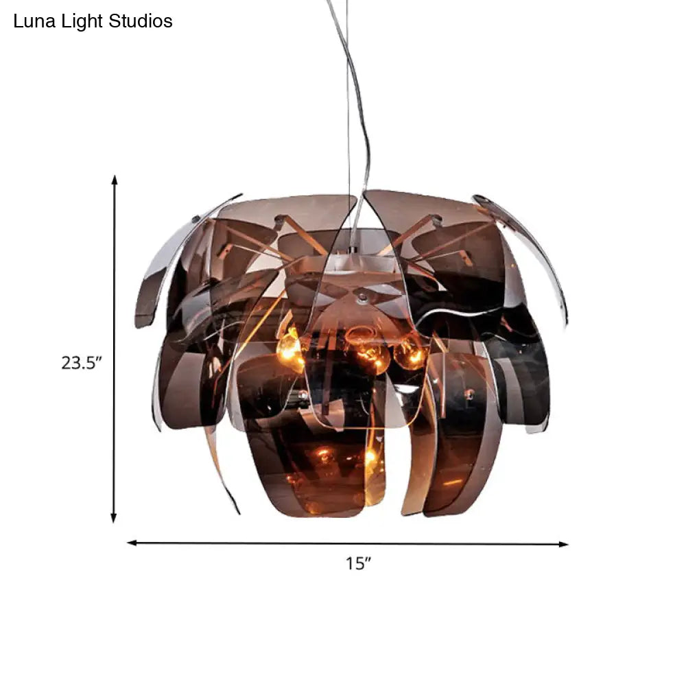 Lámpara colgante moderna de cristal gris humo con forma de flor para techo de sala de estar (4 bombillas)