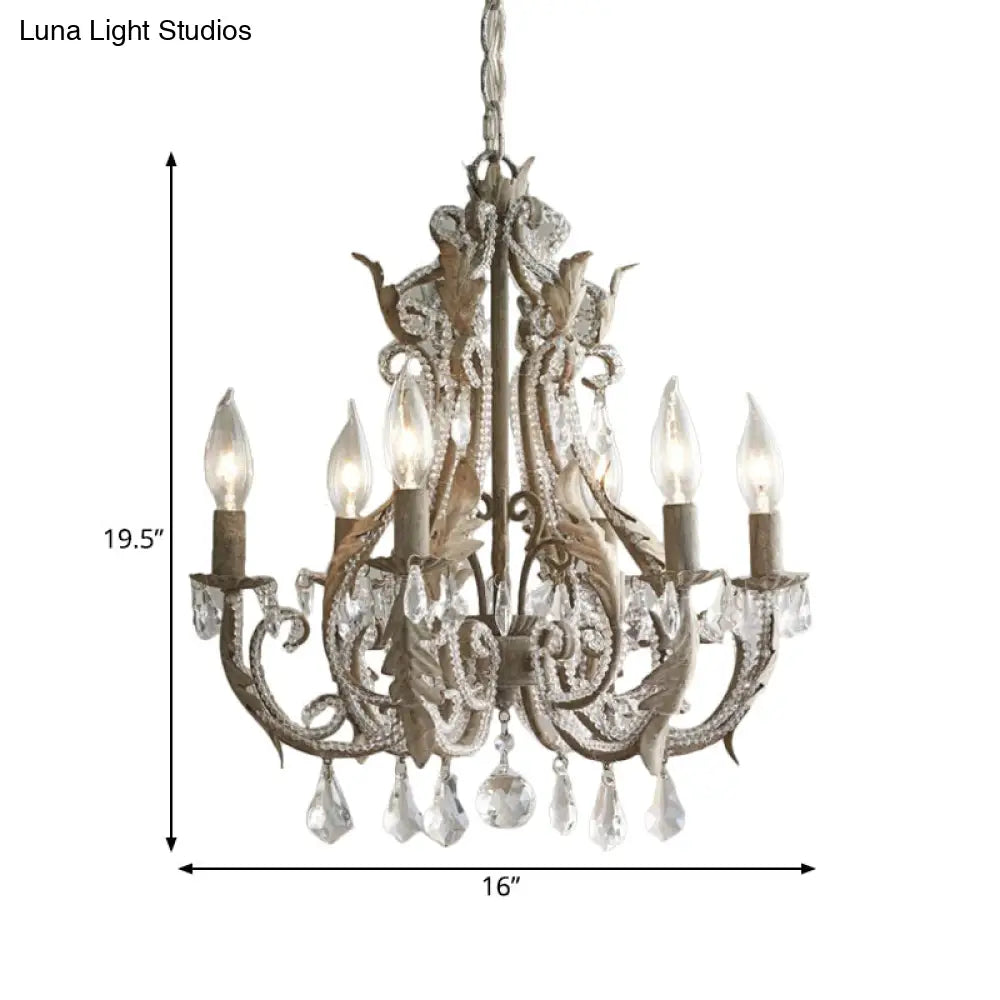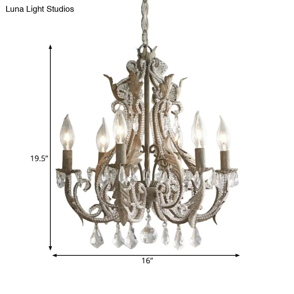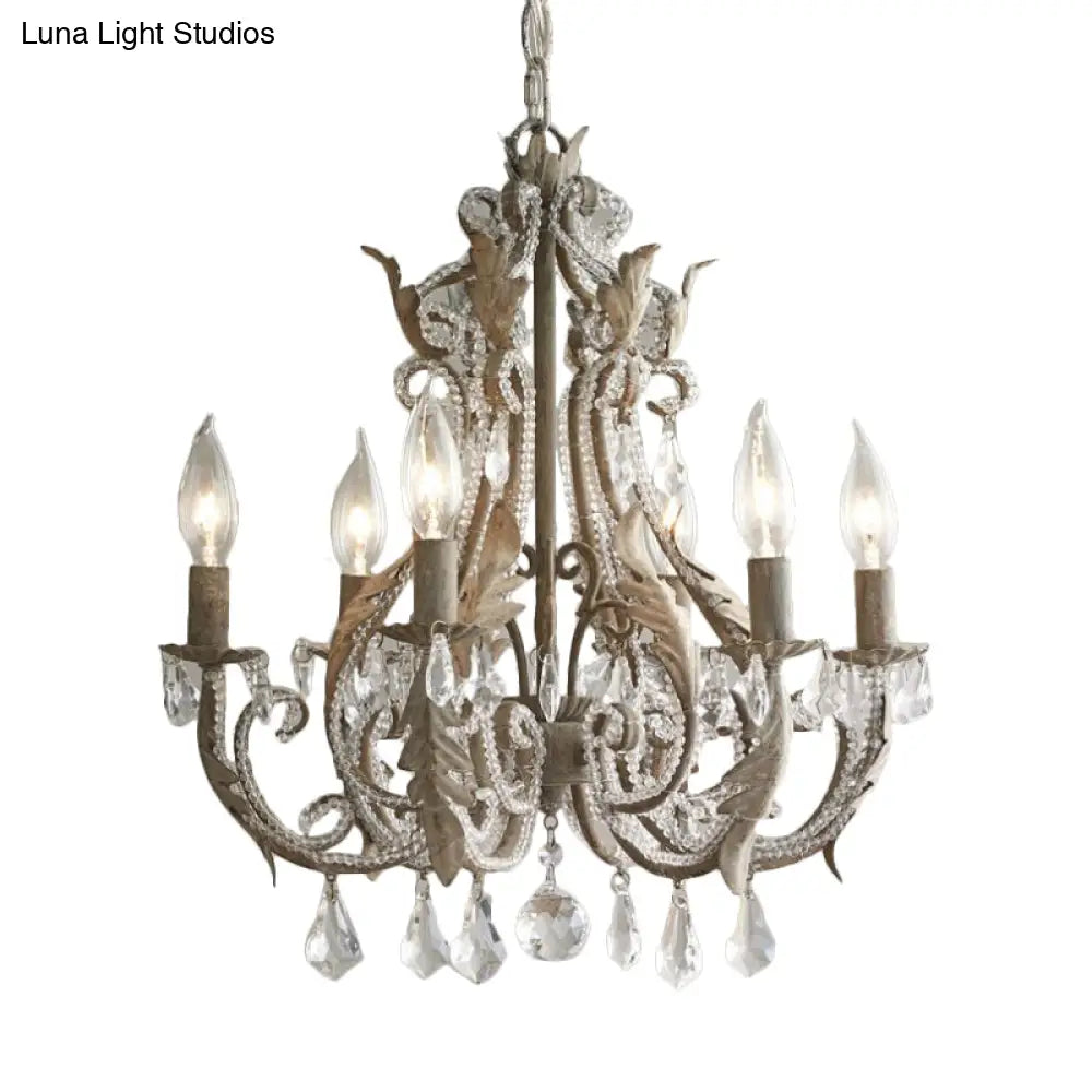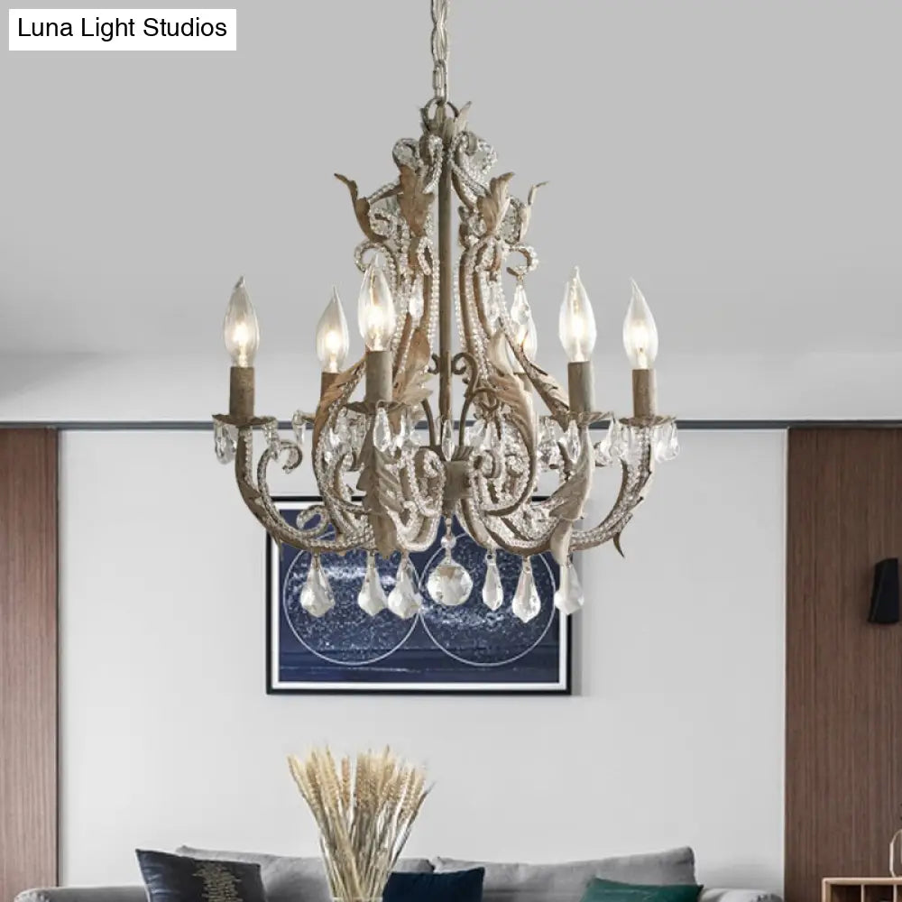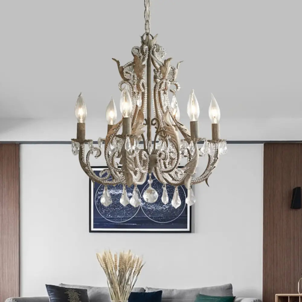 Lámpara de araña francesa de cristal de 6 luces con acabado gris envejecido