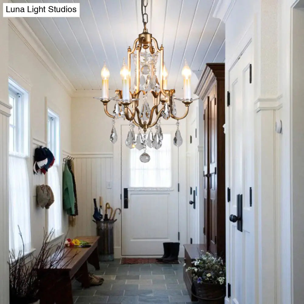 Lámpara de araña francesa estilo campestre con colgantes de cristal - Lámpara colgante de latón de 4 luces para pasillo