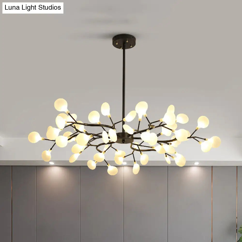 Lámpara de araña Frosted Black Branch - Lámpara colgante metálica moderna para restaurantes
