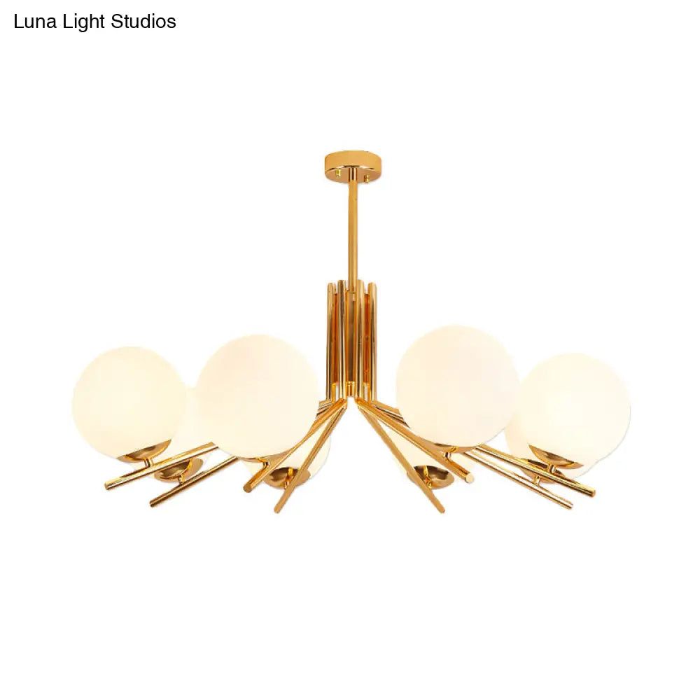 Lámpara de araña esférica de cristal blanco esmerilado - Lámpara colgante moderna dorada de 8 luces