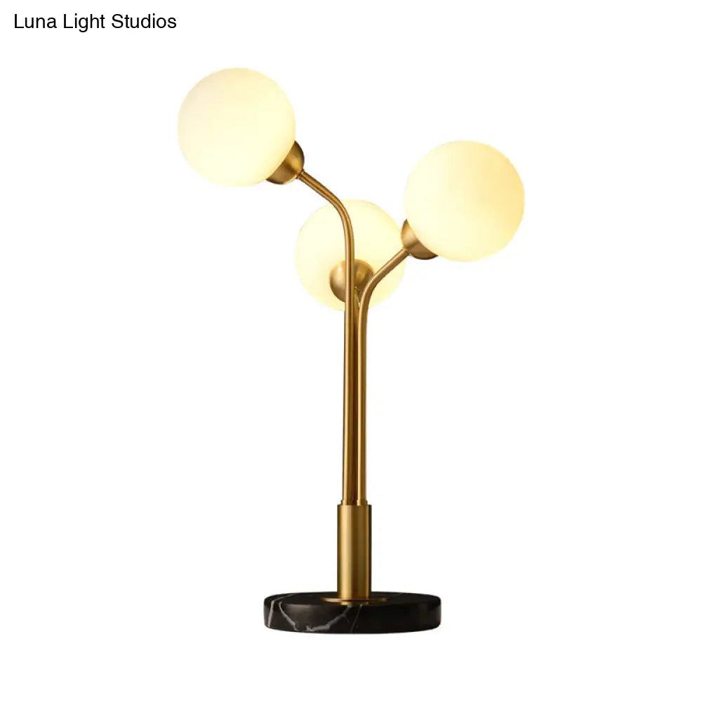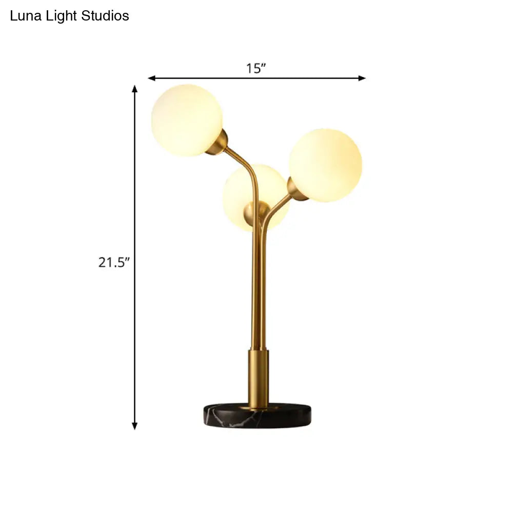 Lámpara de mesilla de noche bifurcada de latón - Cristal opalino, 3 cabezales, diseño posmoderno