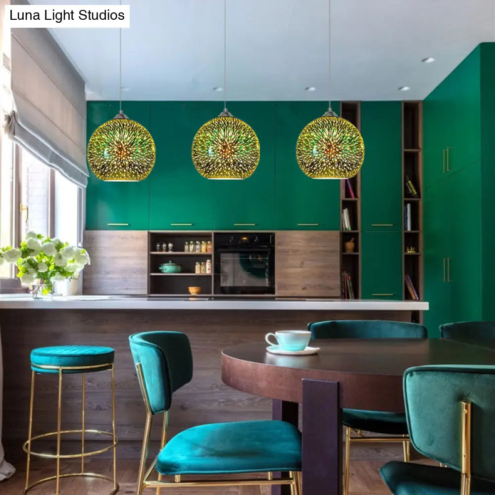 Lámpara colgante moderna con globo de cristal 3D dorado/cobre - 1 cabezal - Lámpara de comedor - 8"/10" de ancho