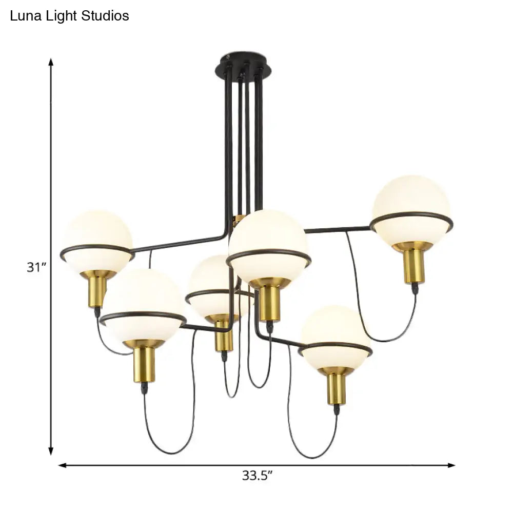 Lámpara de araña radial dorada moderna con pantalla esférica de cristal blanco - Lámpara colgante metálica de varias luces