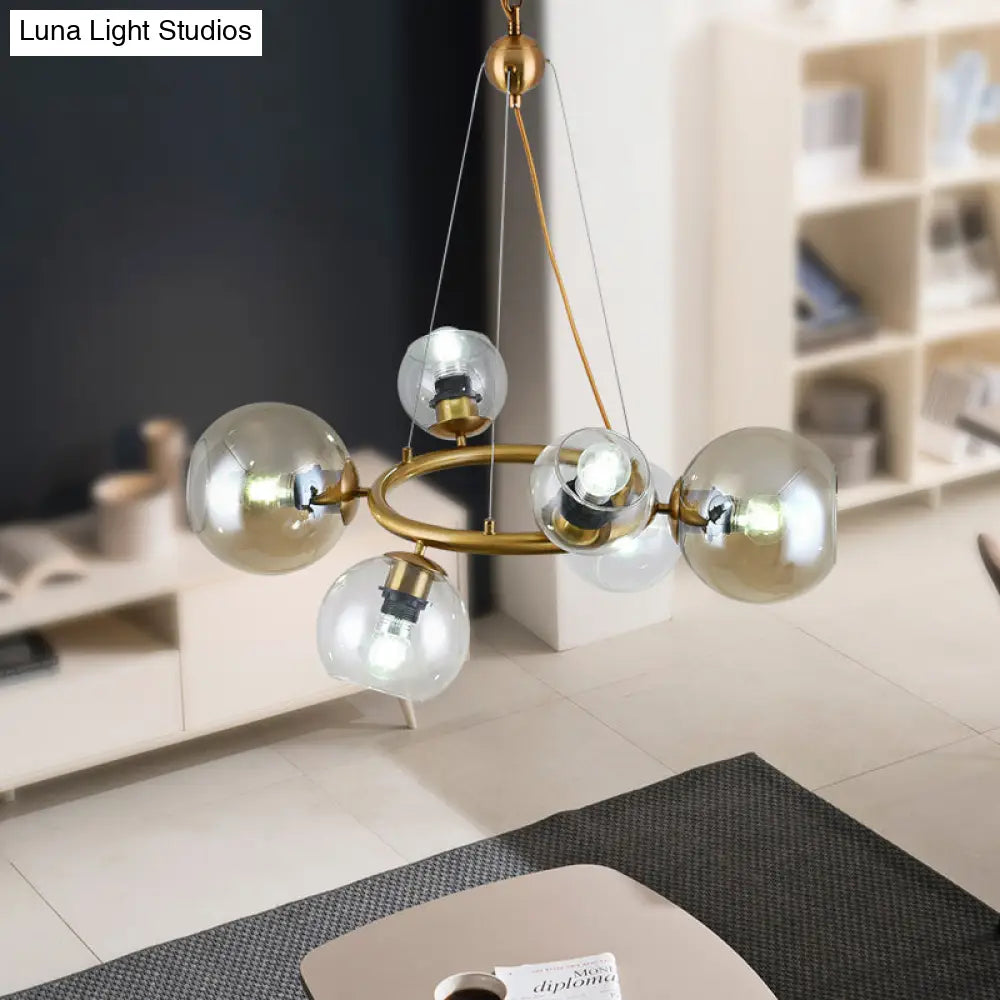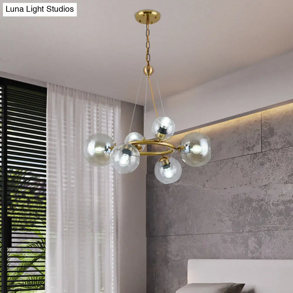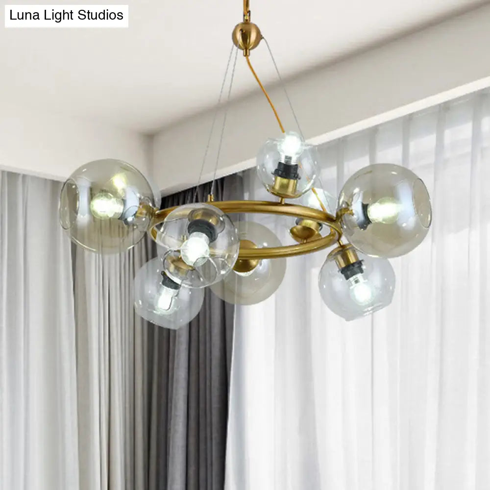 Lámpara de araña colgante contemporánea dorada - Cristal transparente, 6/9 cabezales