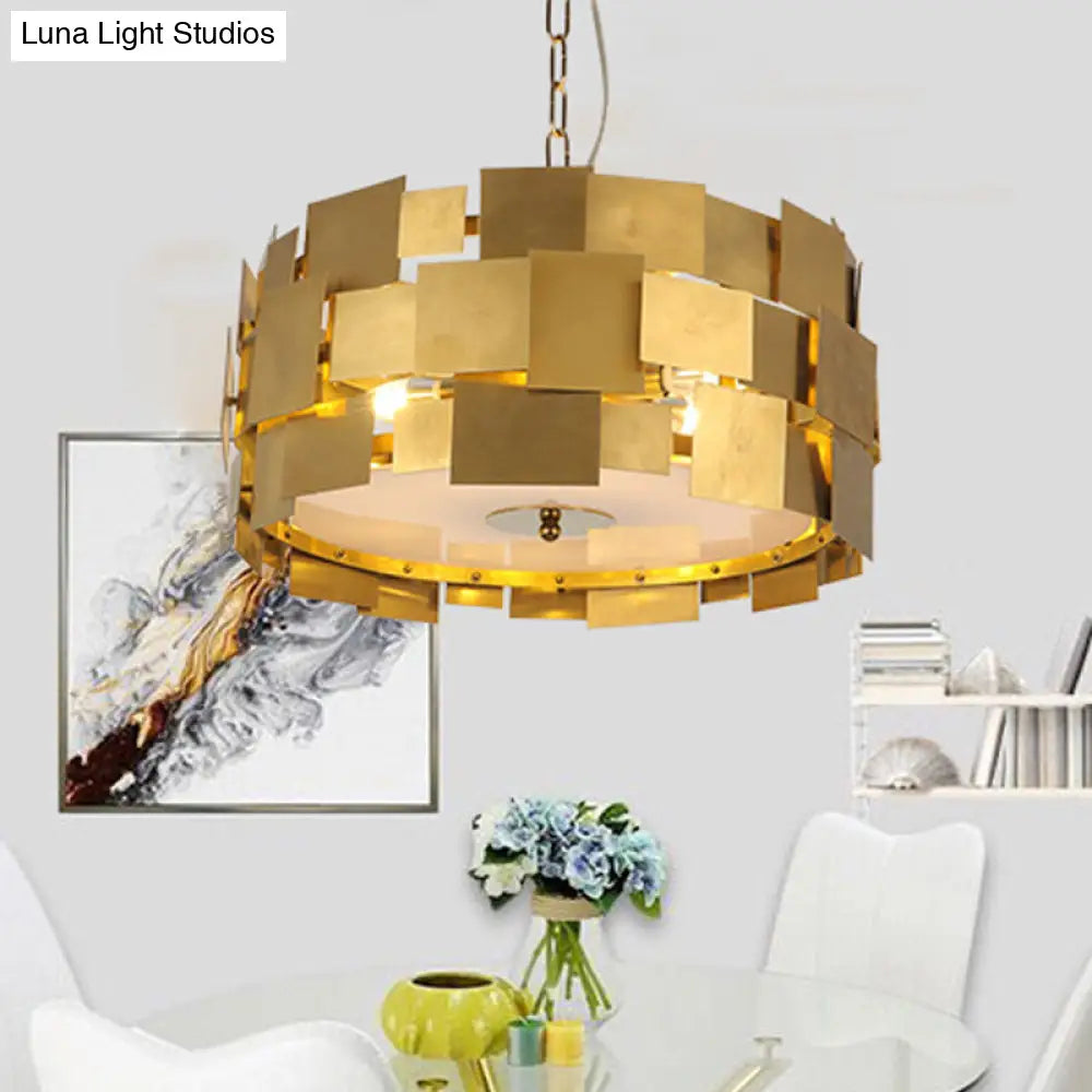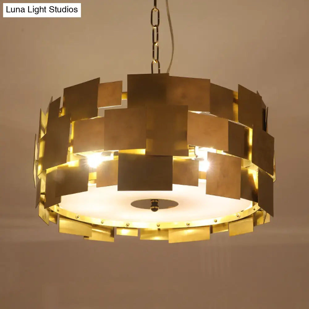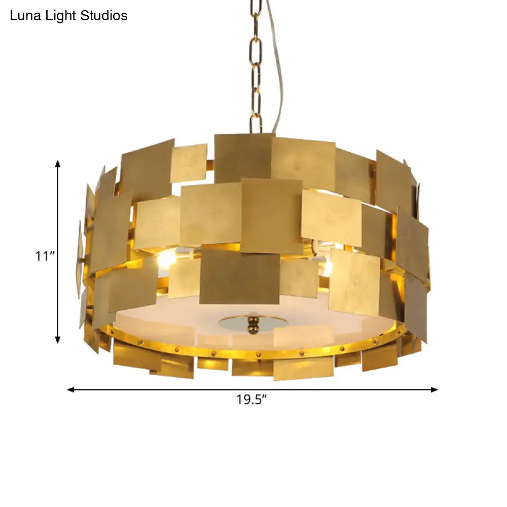 Kit de lámpara colgante moderna dorada con panel cuadrado - Lámpara de techo metálica cilíndrica de 6 bombillas