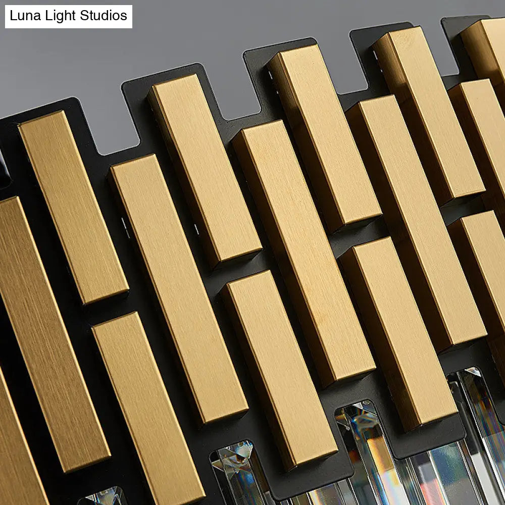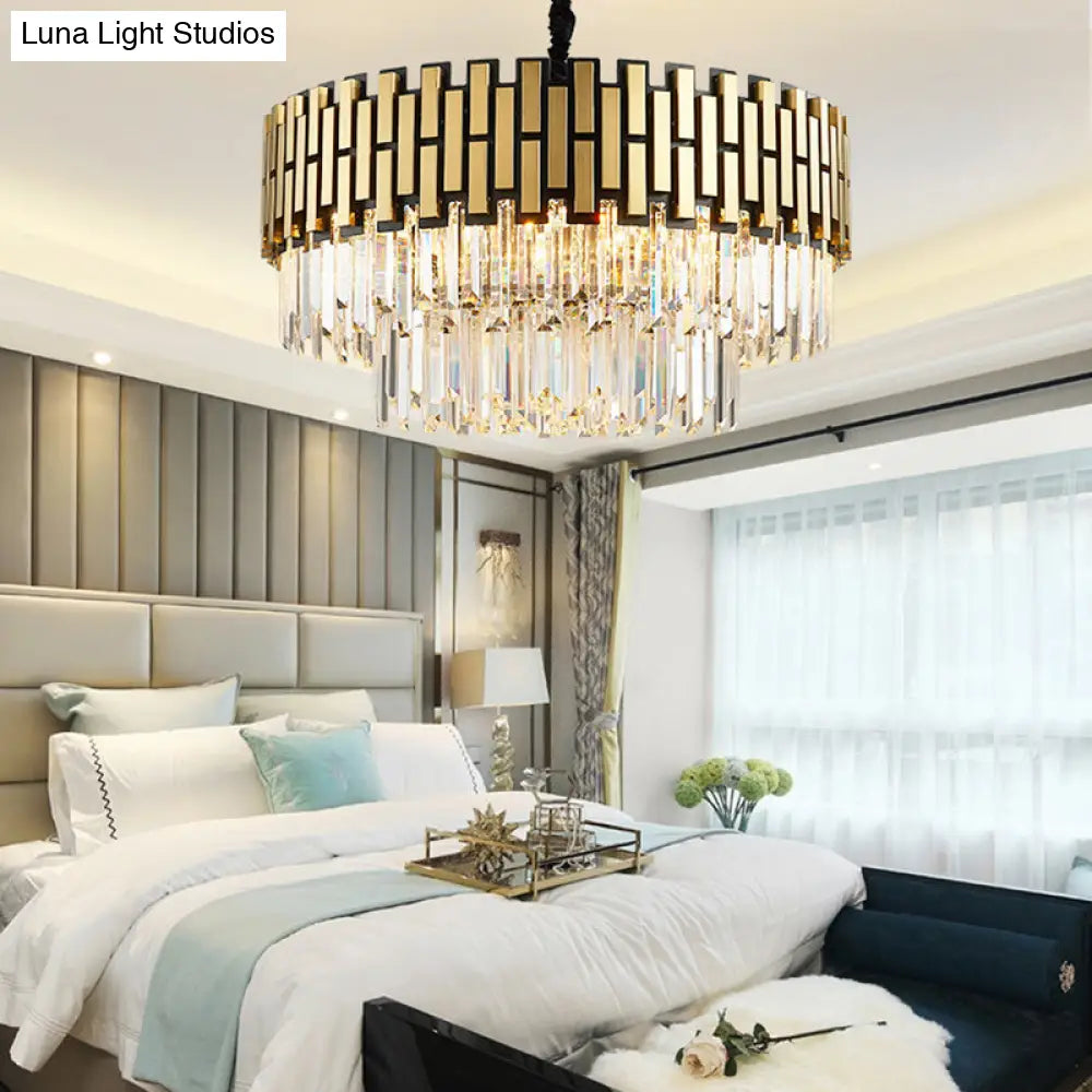 Lámpara de araña colgante contemporánea de metal con pantalla redonda y cristal facetado - Lámpara colgante dorada