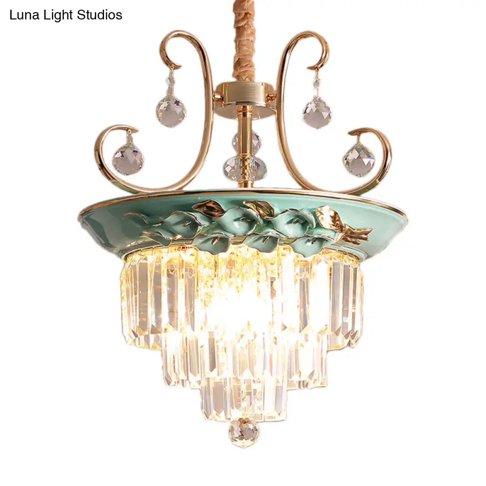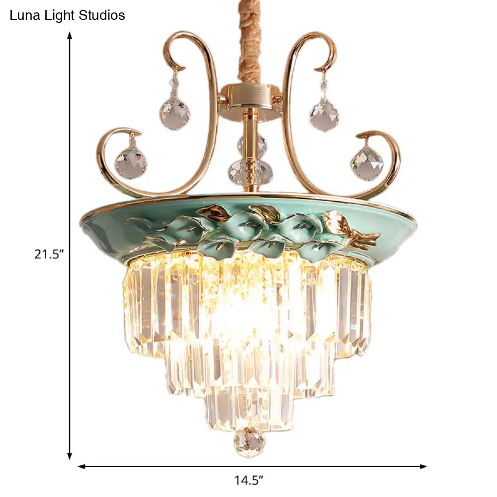 Lámpara de araña colgante retro de cristal verde de 3 cabezas y varios niveles - Perfecta para la sala de estar