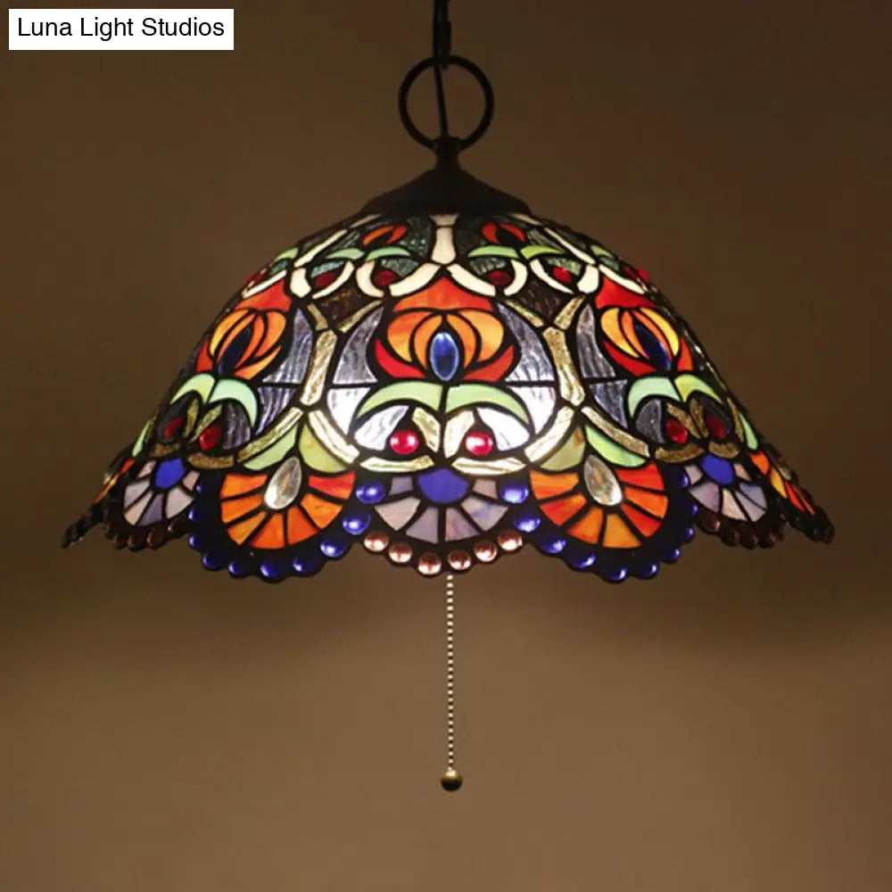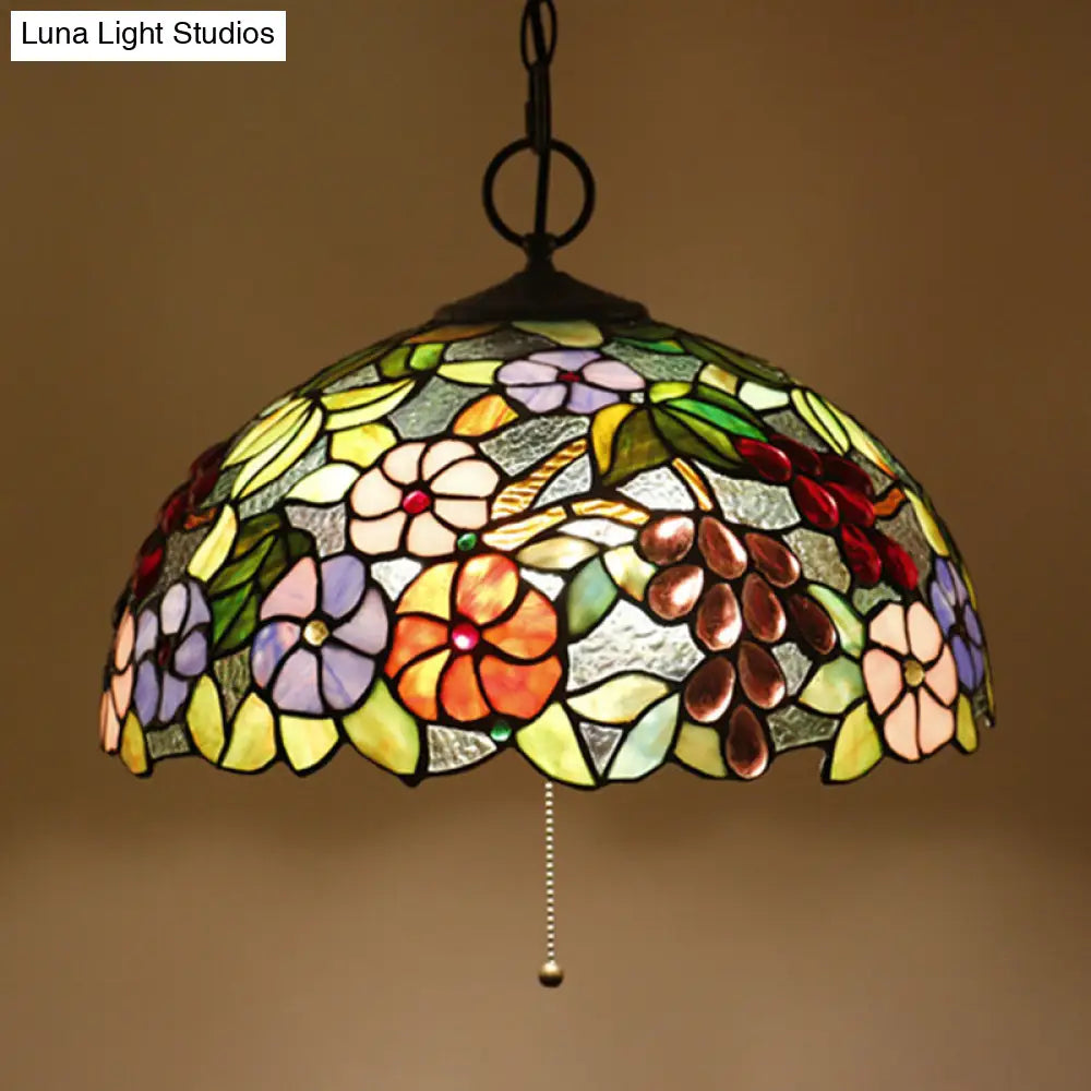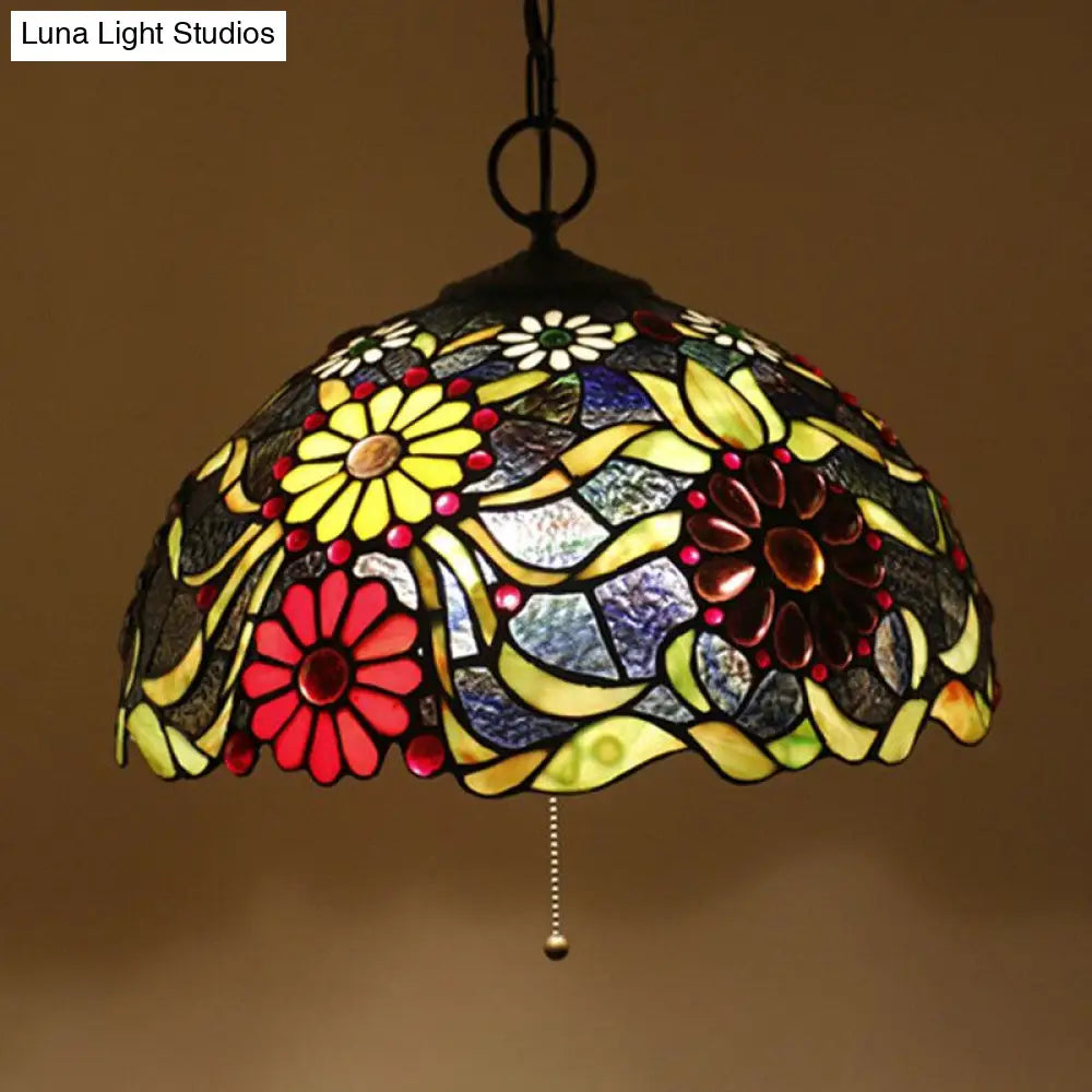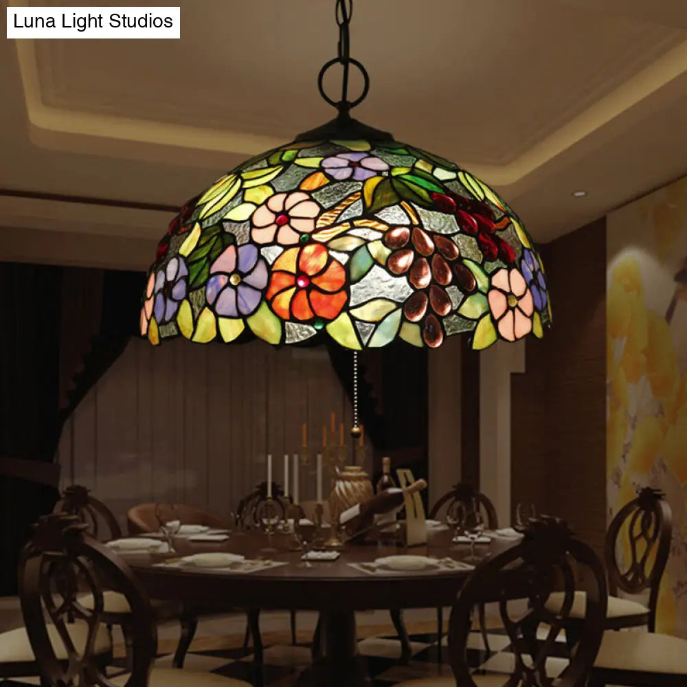 Lámpara colgante de araña de cristal negro artesanal - Lámpara mediterránea de 3 luces con cúpula, hecha a mano