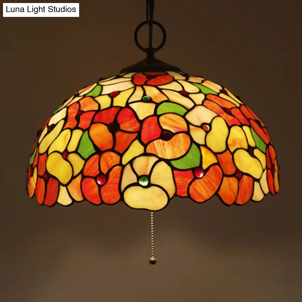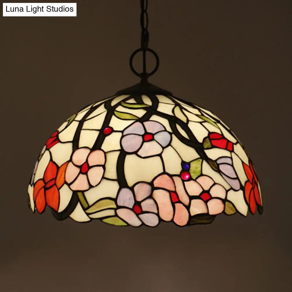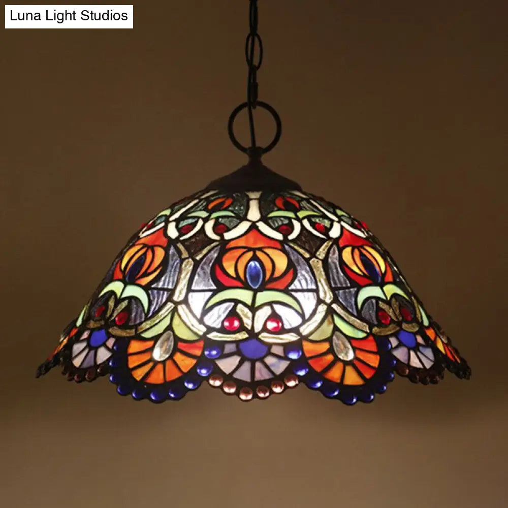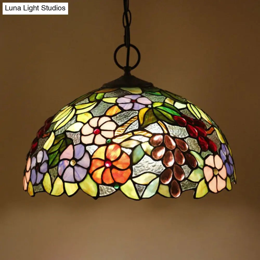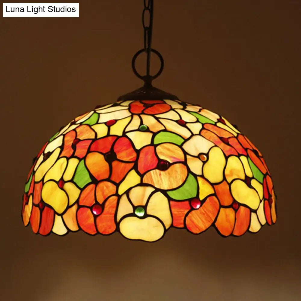 Lámpara colgante de araña de cristal negro artesanal - Lámpara mediterránea de 3 luces con cúpula, hecha a mano