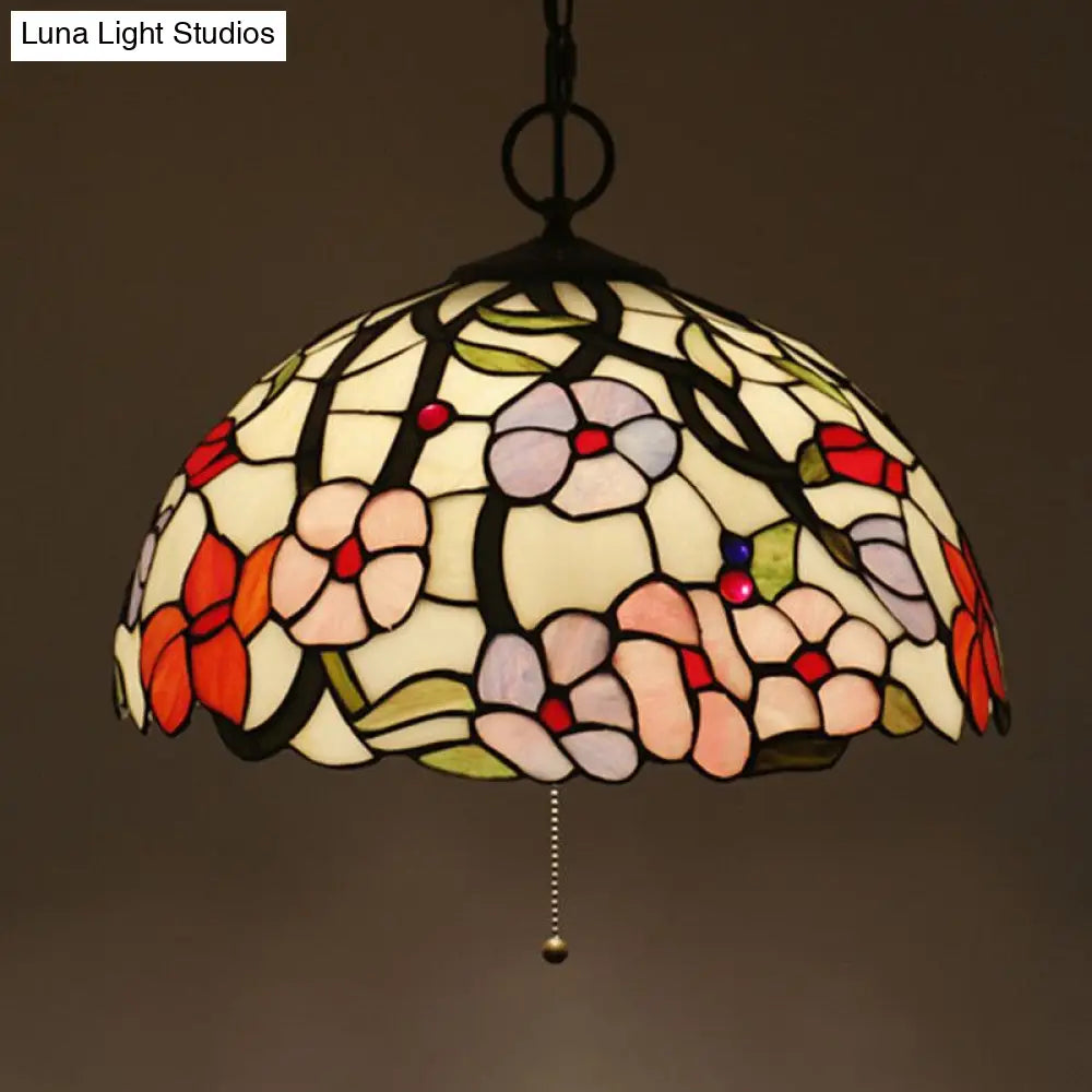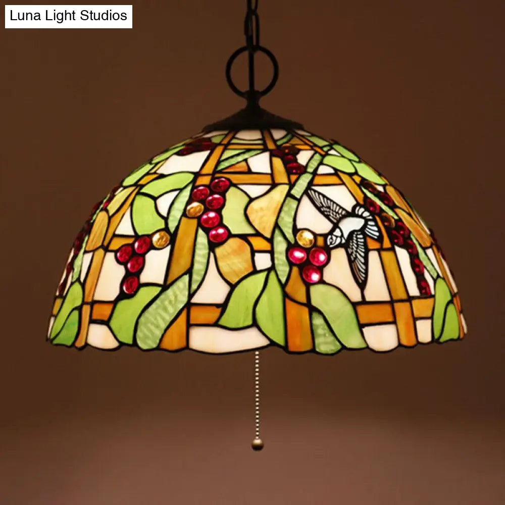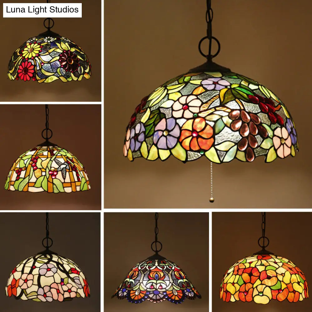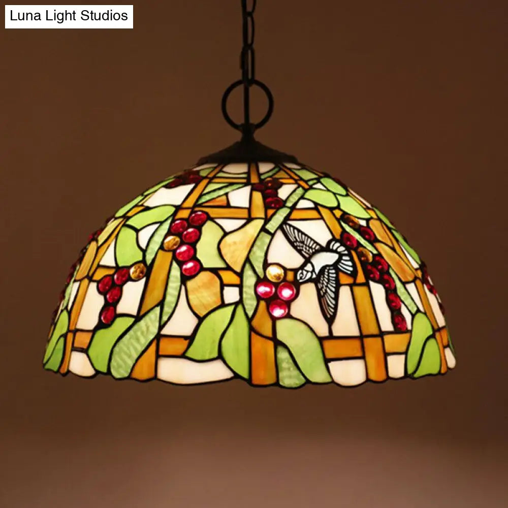 Lámpara colgante de araña de cristal negro artesanal - Lámpara mediterránea de 3 luces con cúpula, hecha a mano