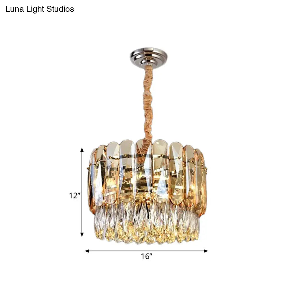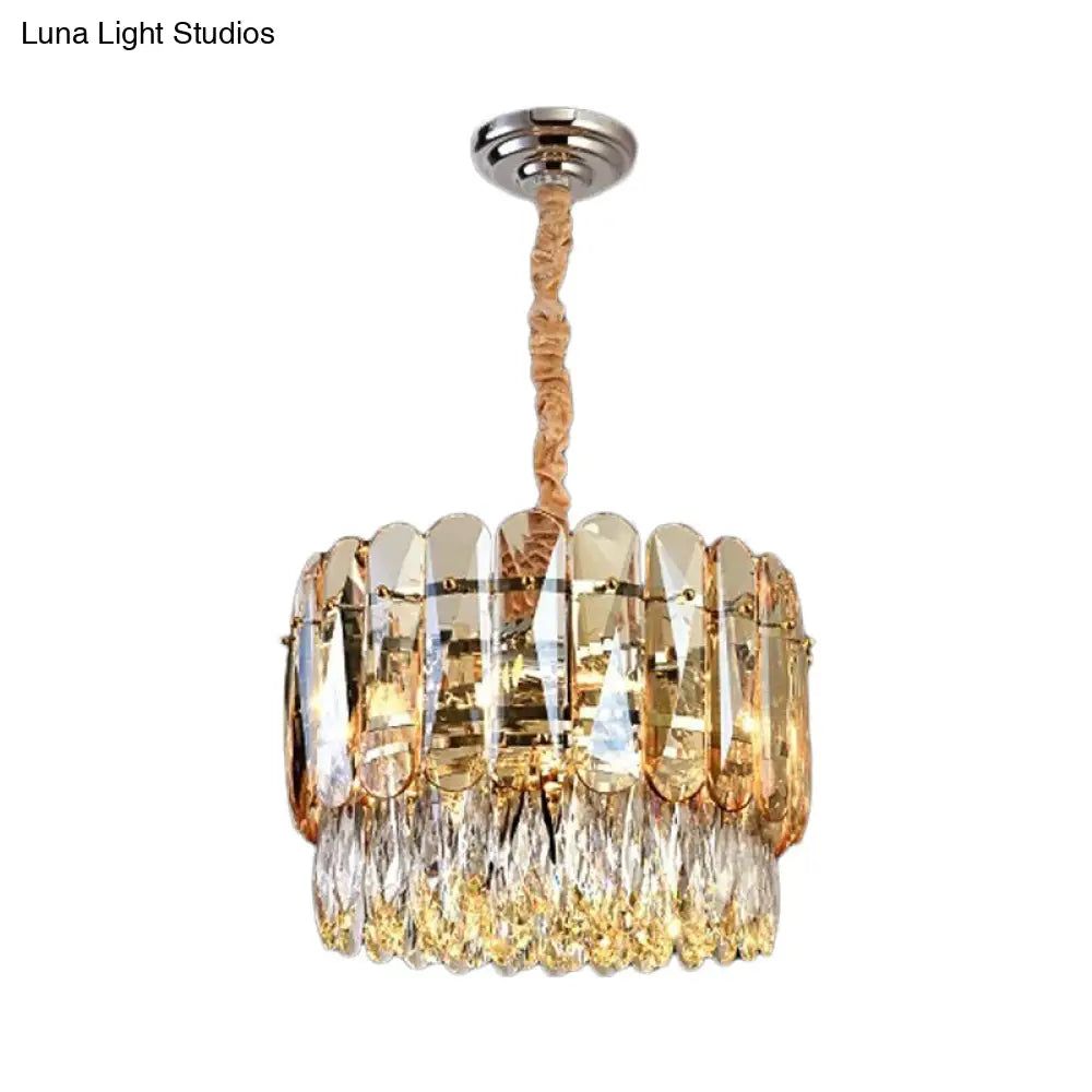 Lámpara de techo de 2 niveles con 6 bombillas de cristal K9 dorado - Diseño moderno en forma de tambor
