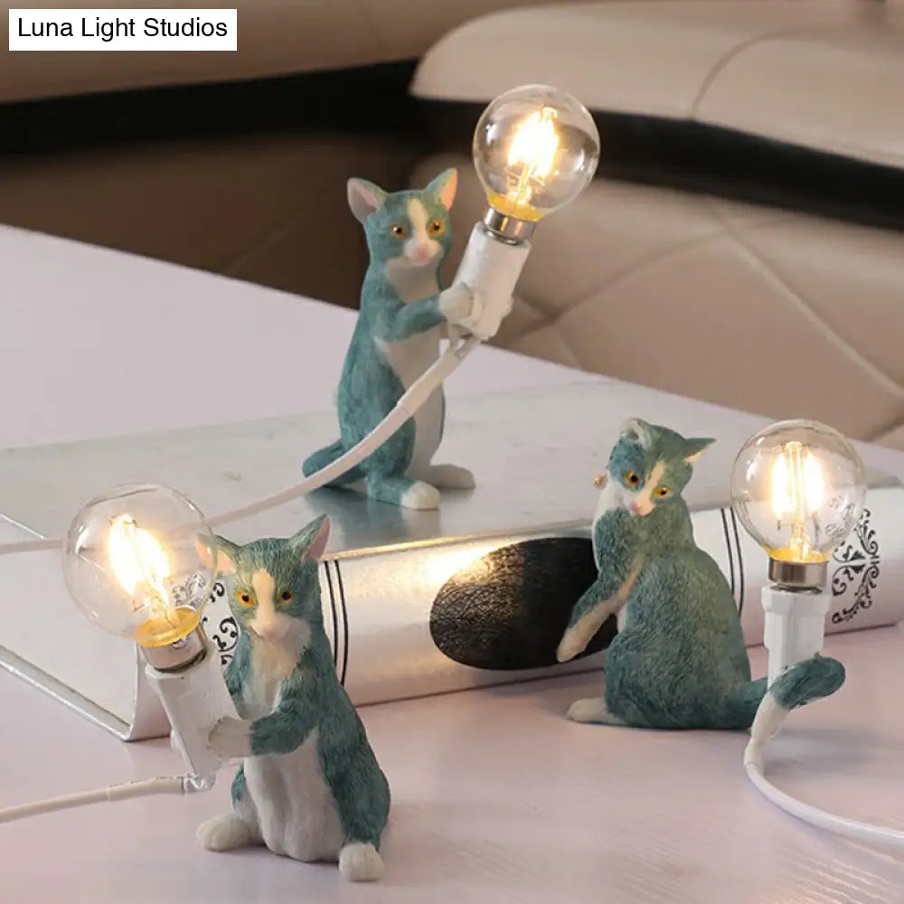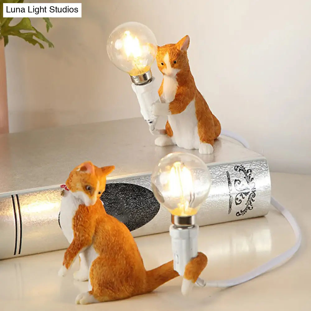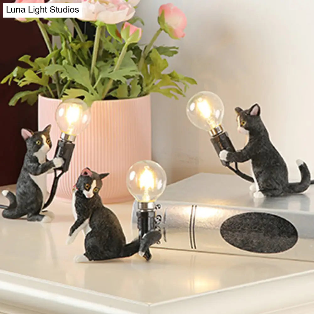 Adorable lámpara de mesilla de noche con forma de gatito – Resina decorativa, segura para niños, 1 bombilla, ideal para la habitación infantil.