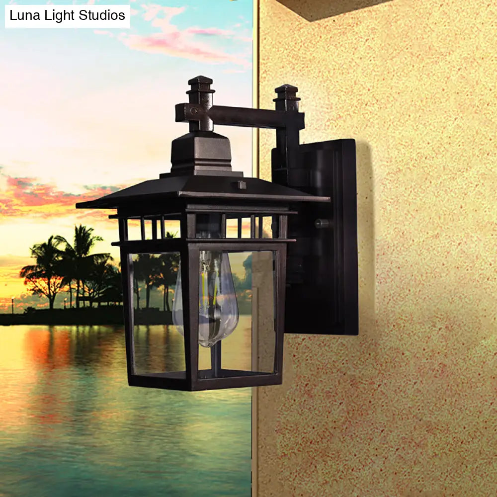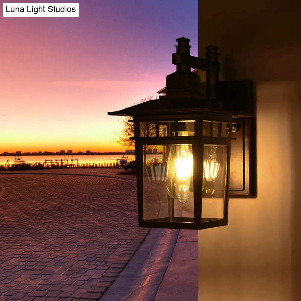 Aplique de pared industrial negro tipo farol - Lámpara colgante de cristal transparente con una bombilla para porche