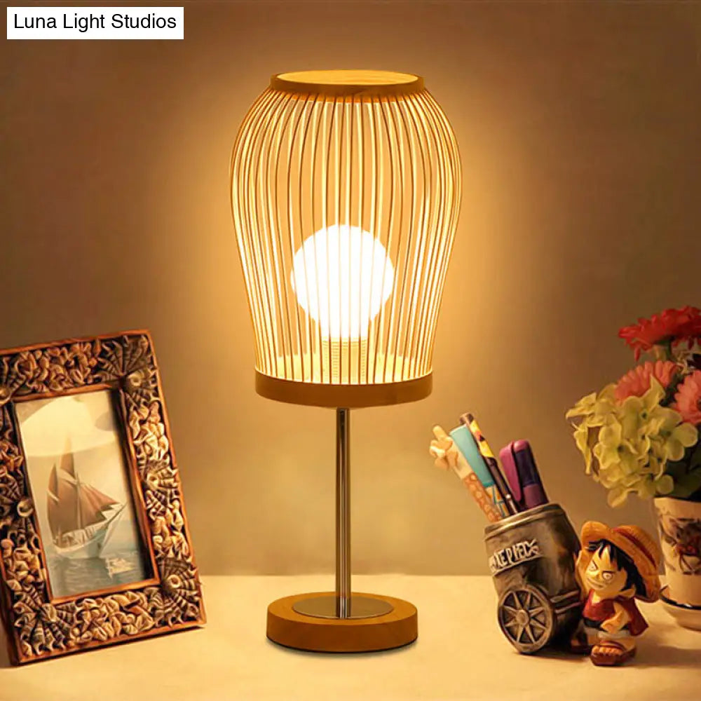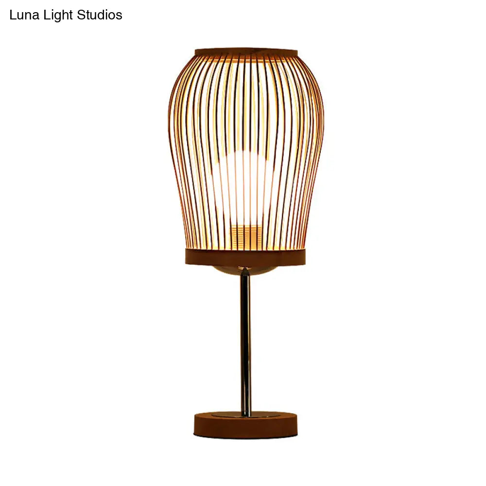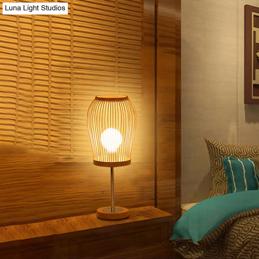 Lámpara de escritorio tipo farol de bambú chino: pequeña lámpara de escritorio beige para sala de estar