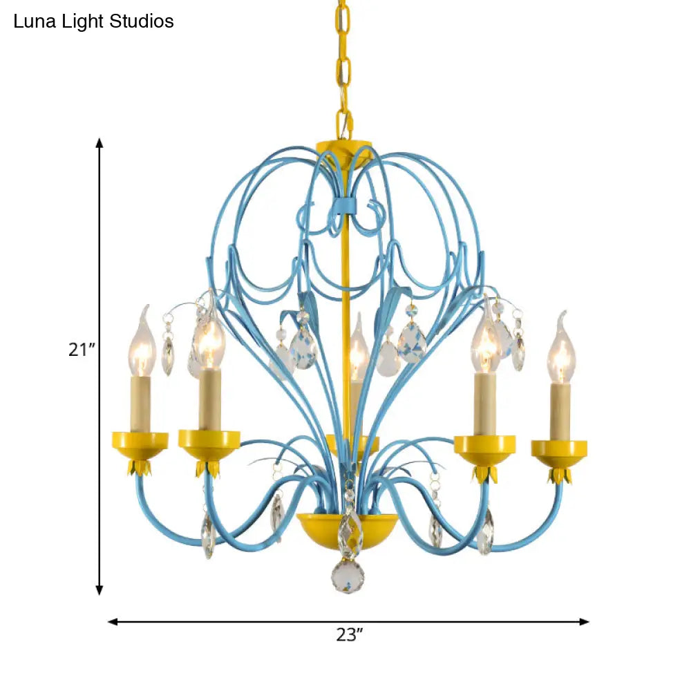 Lámpara de araña infantil con forma de macaron y colgante de cristal - Amarillo/Azul, Acabado metálico, 5 luces