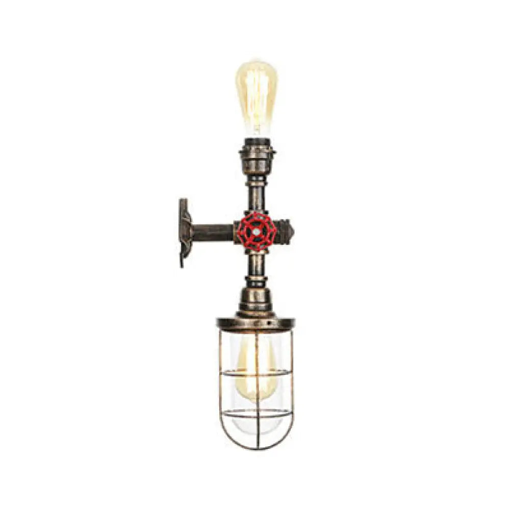 Aplique de pared estilo náutico en bronce antiguo con rejilla protectora y válvula de tubo - 1 bombilla