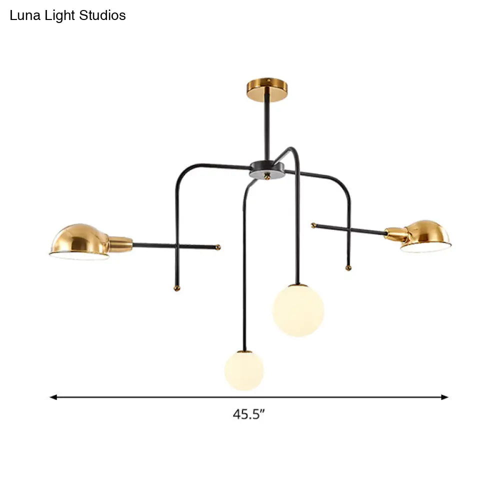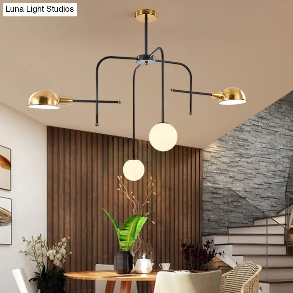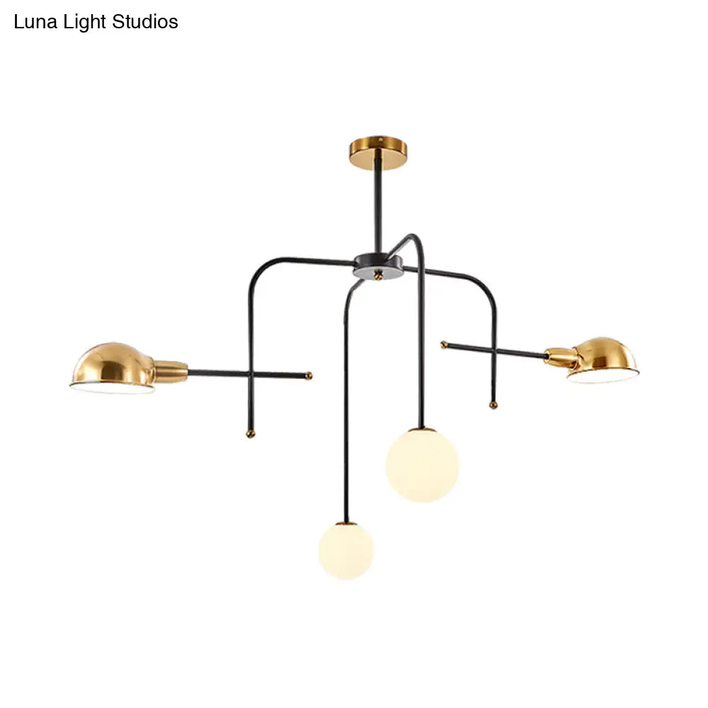 Lámpara de techo colgante moderna con brazos metálicos, 2/4 bombillas, acabado en negro y dorado.