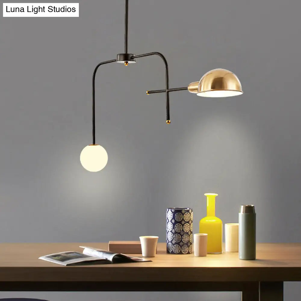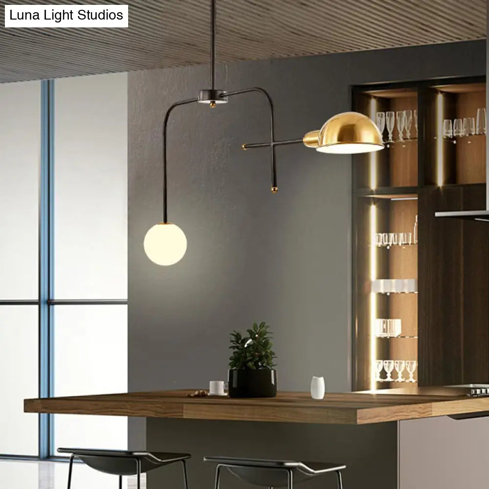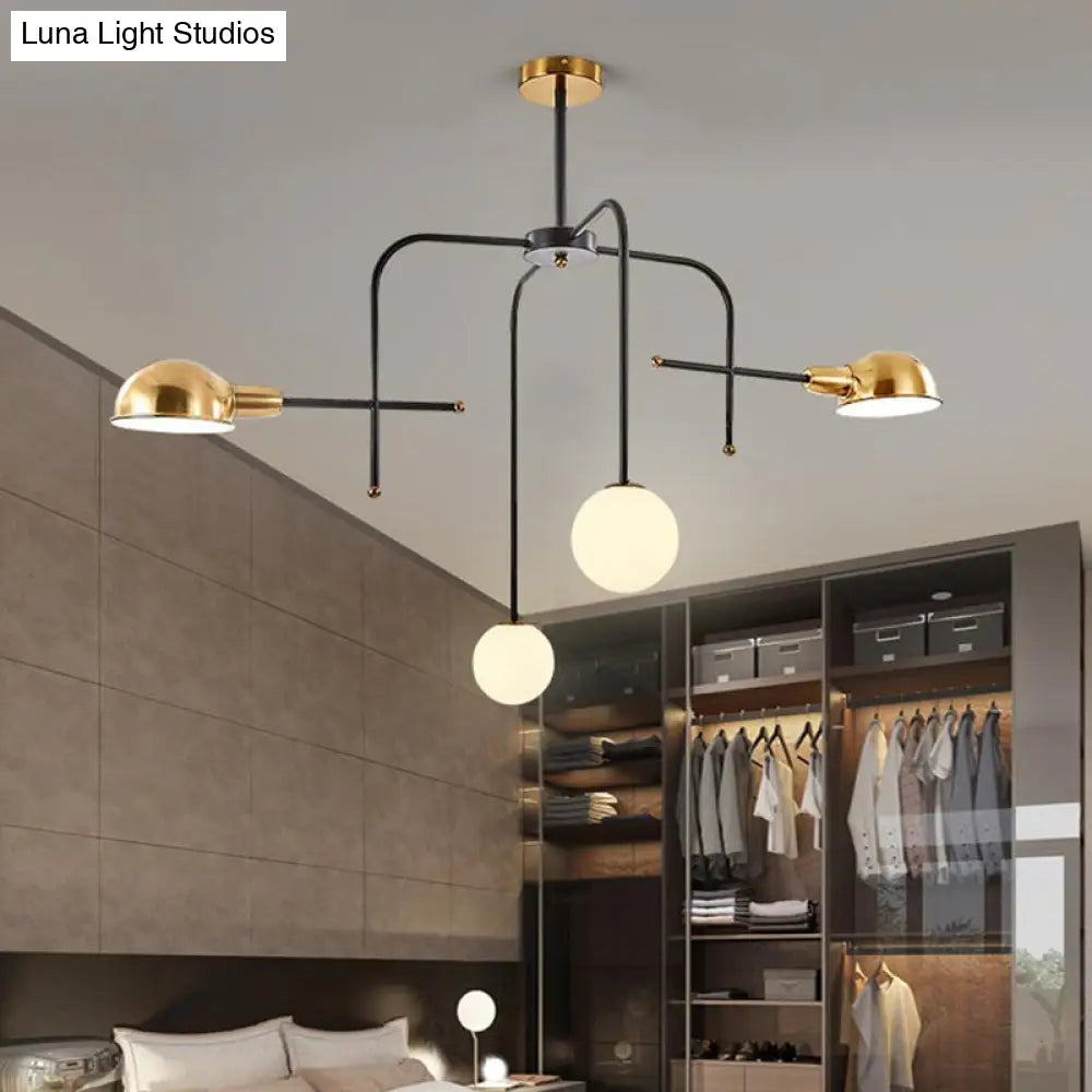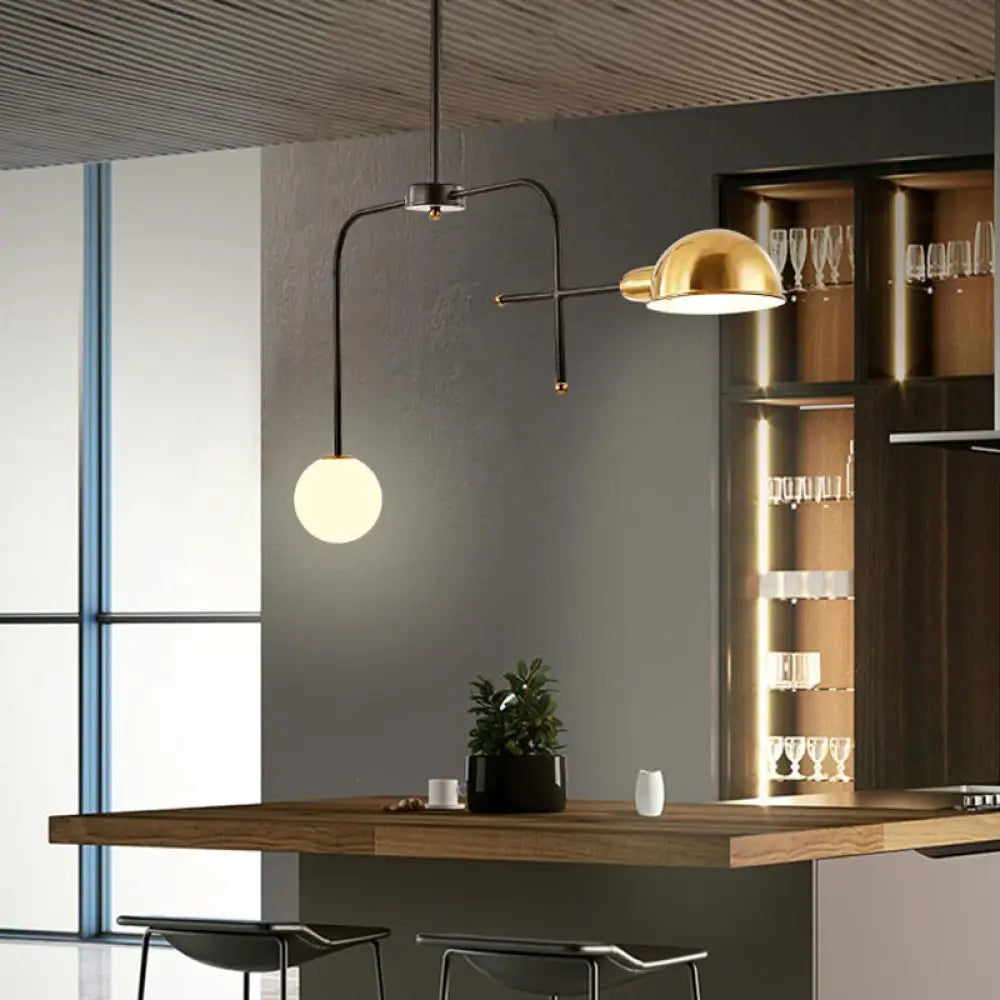 Lámpara de techo colgante moderna con brazos metálicos, 2/4 bombillas, acabado en negro y dorado.