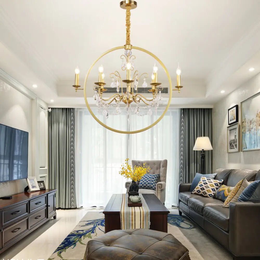 Lámpara de techo moderna de metal tipo candelabro: araña de latón de 6/8 luces con colgante de cristal