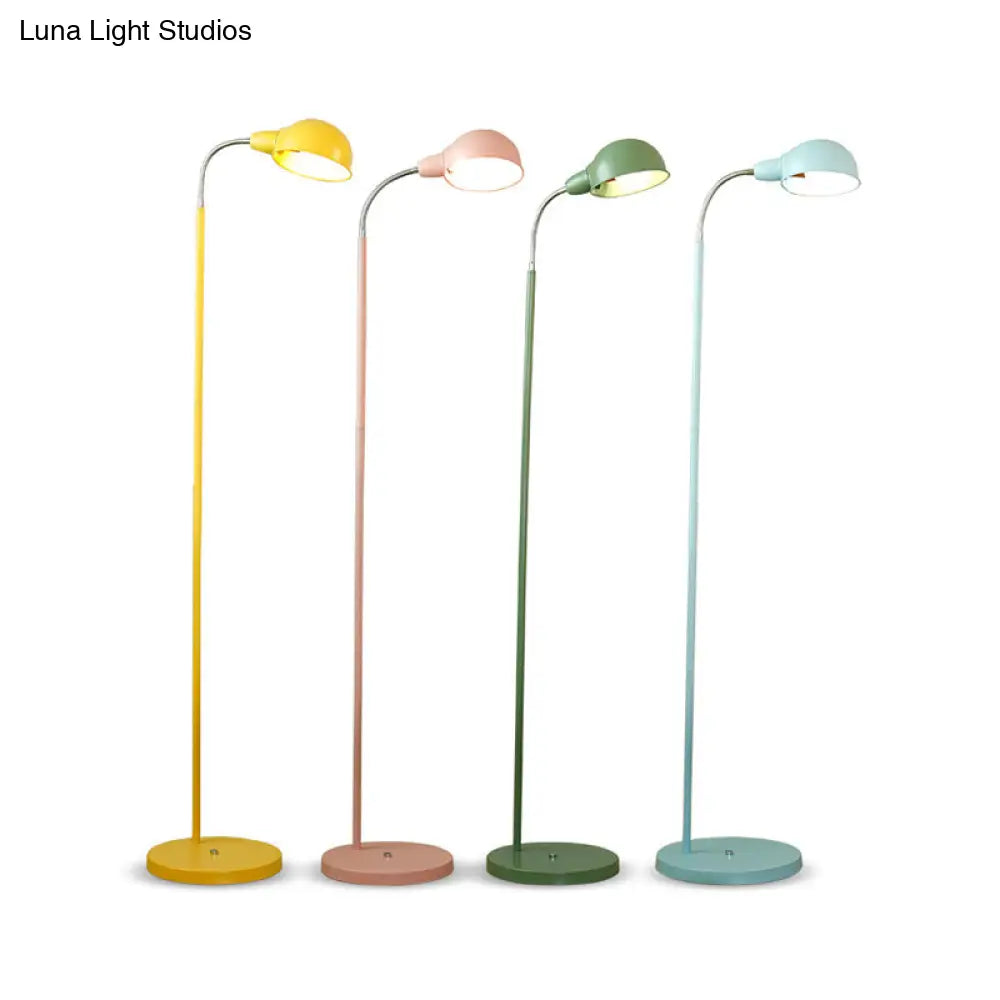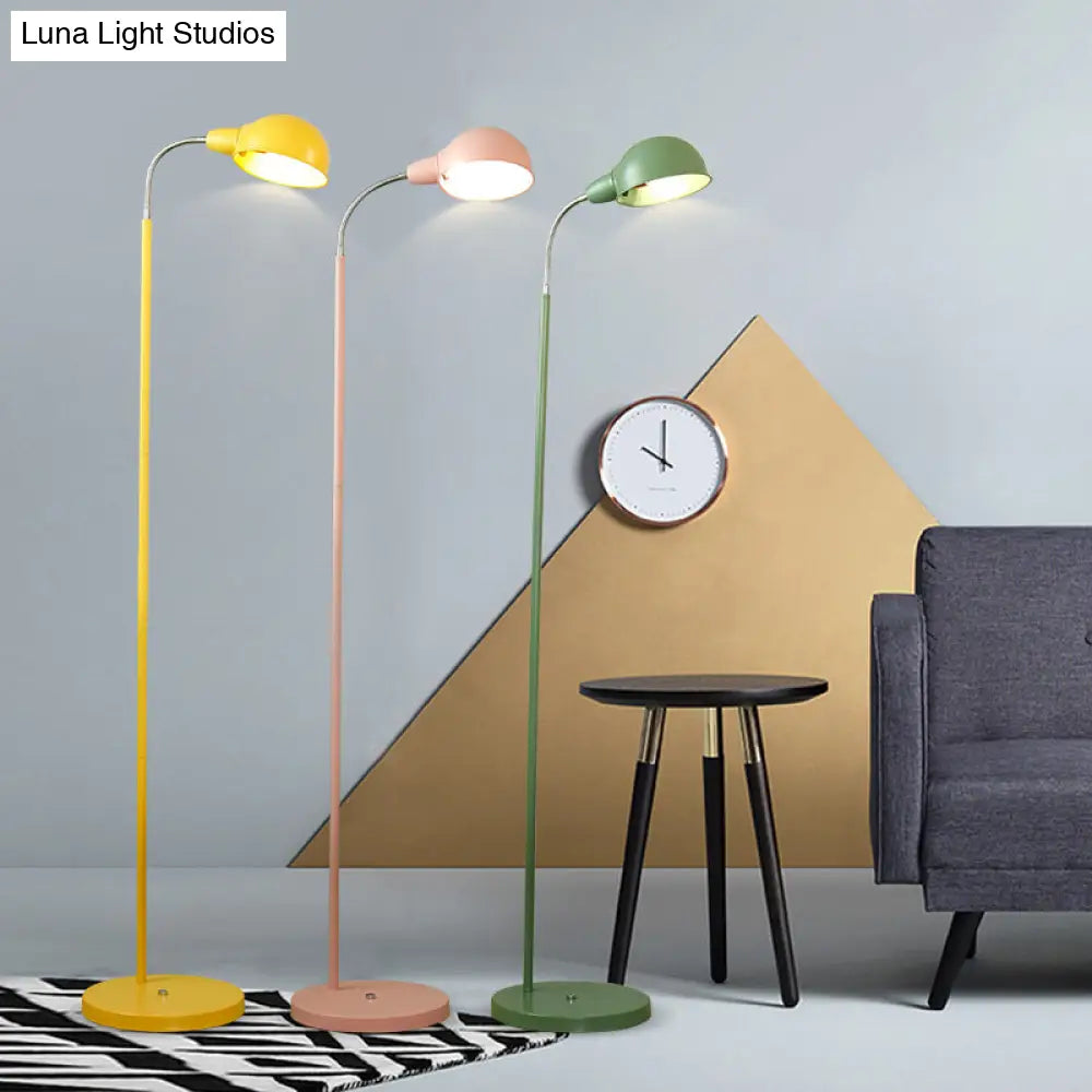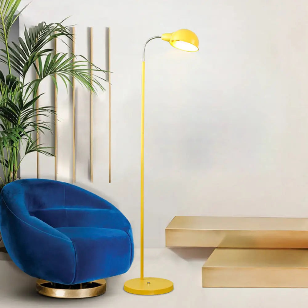 Lámpara de pie contemporánea con pantalla de cúpula metálica y brazo flexible tipo cuello de cisne
