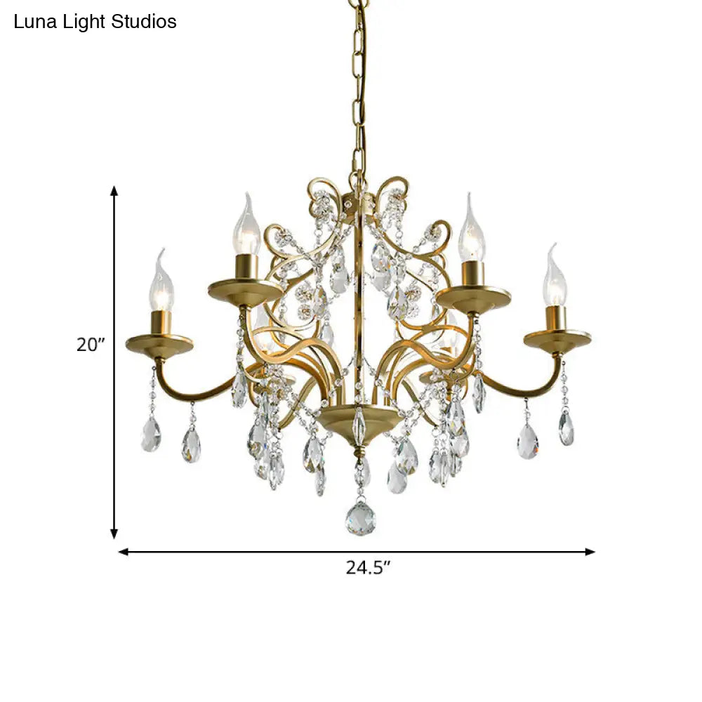 Esta lámpara de araña colgante de metal dorado aportará un toque moderno y clásico a cualquier habitación. Su versatilidad permite elegir entre tres y seis luces, para que puedas personalizarla a tu gusto. El acabado dorado, su elegante diseño y los detalles de cristal le confieren un toque de lujo adicional, convirtiéndola en un complemento ideal para cualquier hogar.