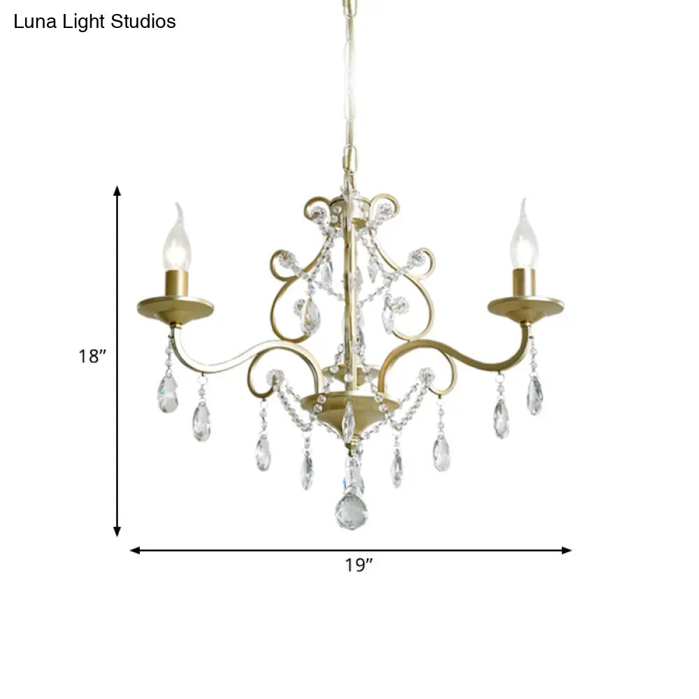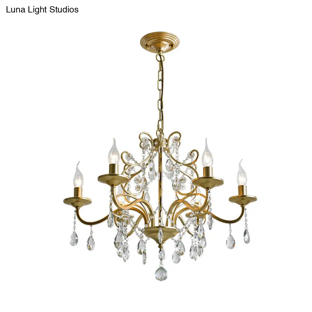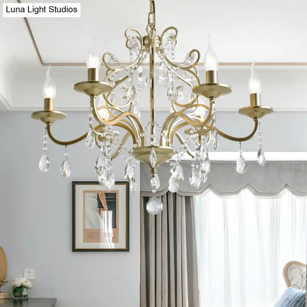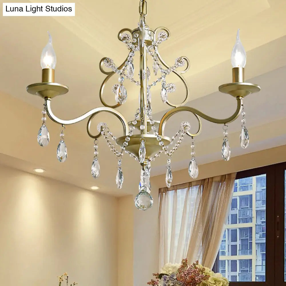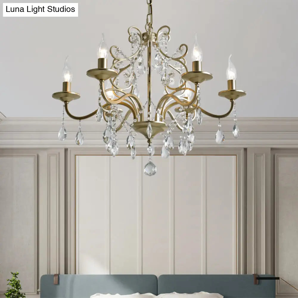 Lámpara de araña contemporánea de metal dorado con detalles de cristal - Colgante de 3/6 bombillas
