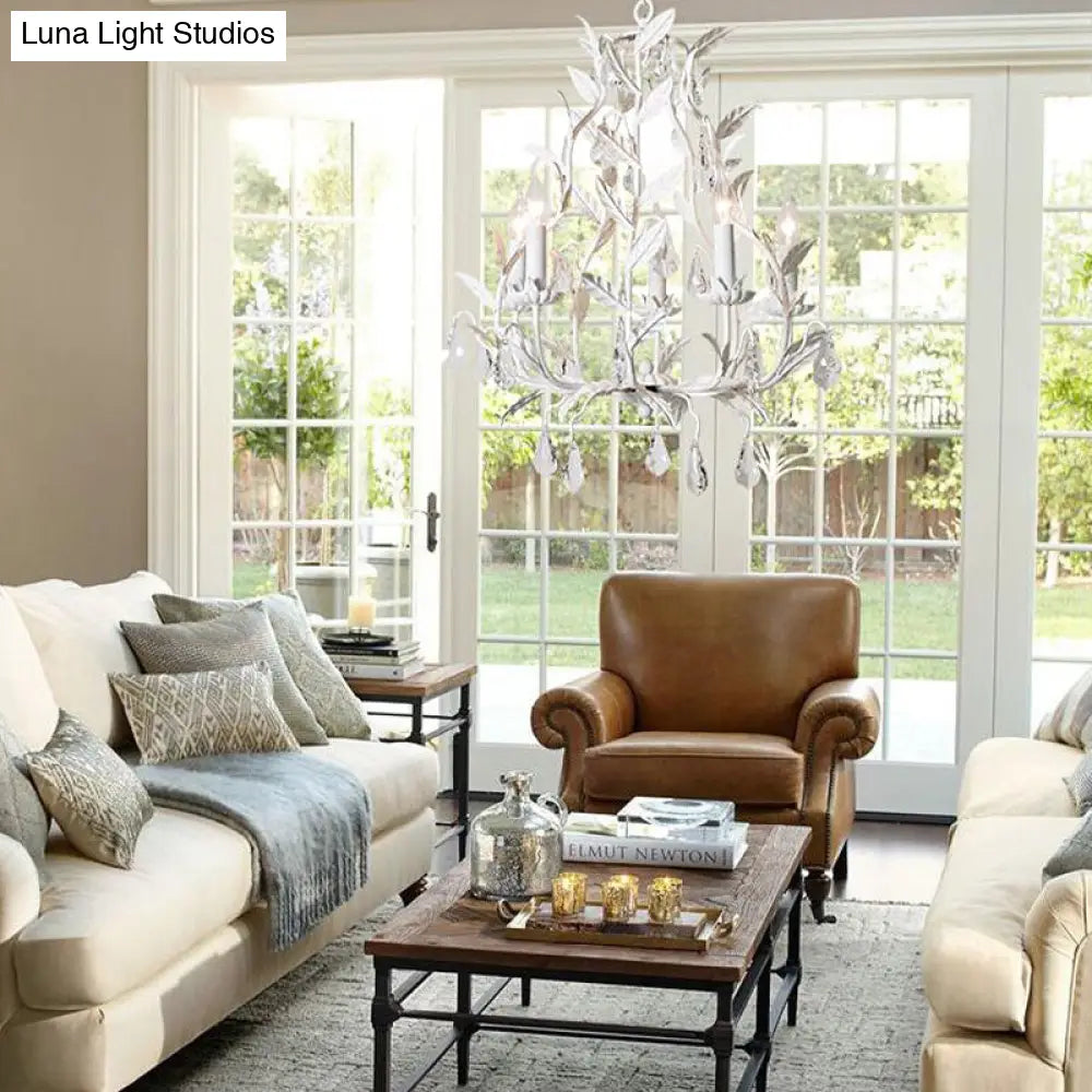 Lámpara de araña moderna con forma de hoja metálica y colgante de cristal - Luminaria de 5 bombillas en gris/blanco envejecido