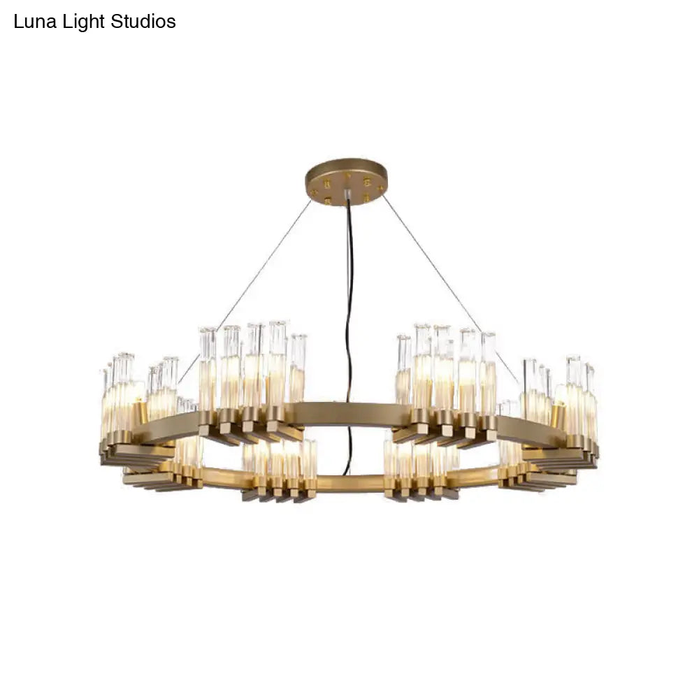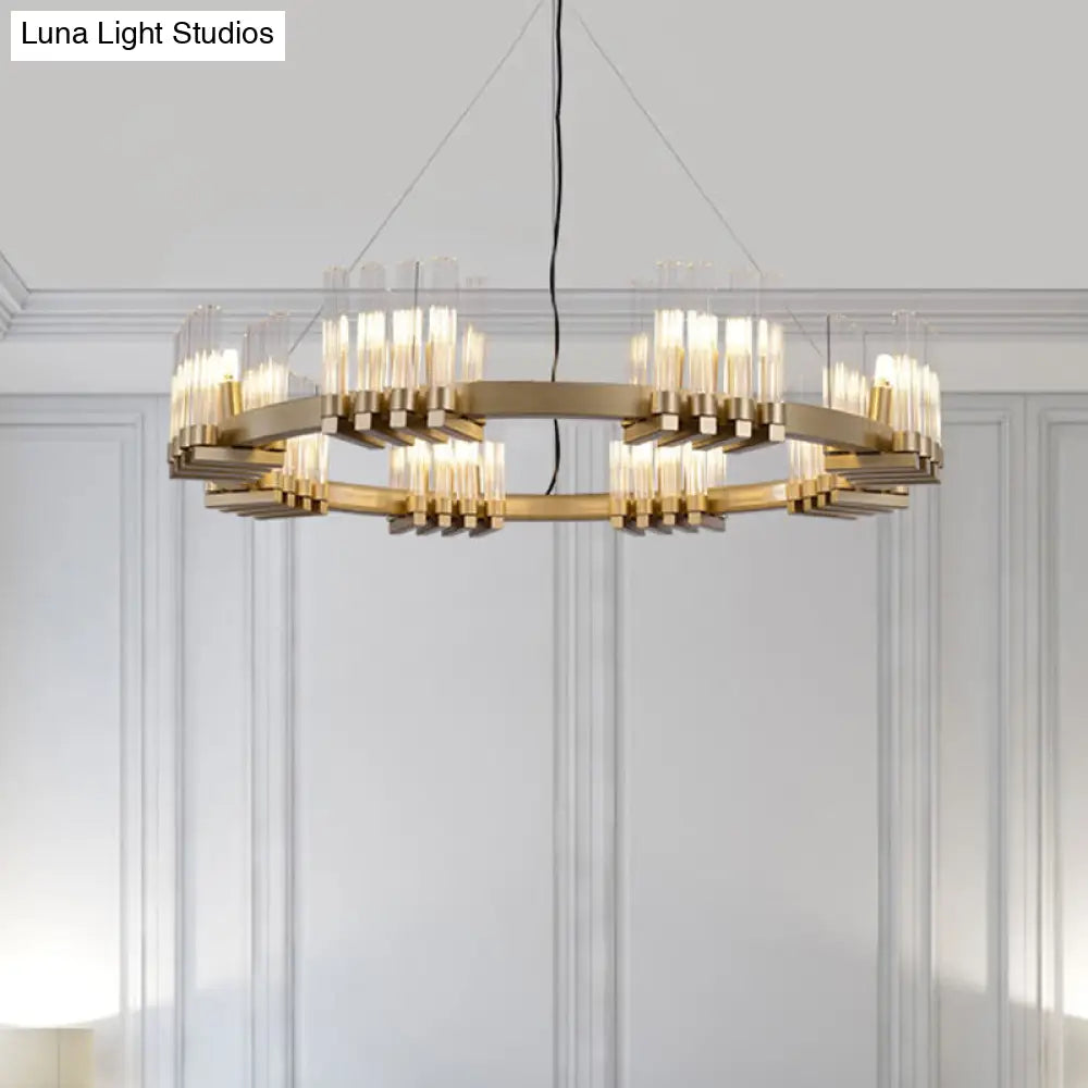 Lámpara colgante moderna con anillo metálico y 24 luces - Lámpara de araña de latón con pantalla de cristal transparente
