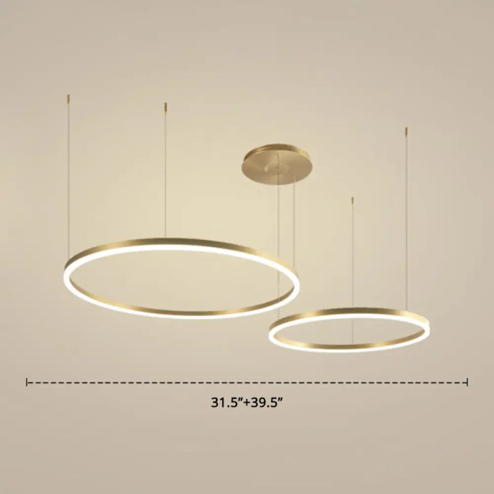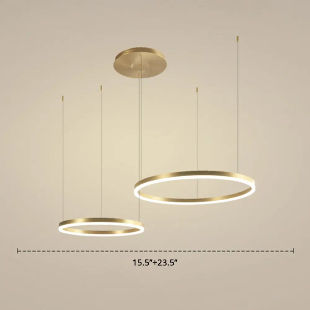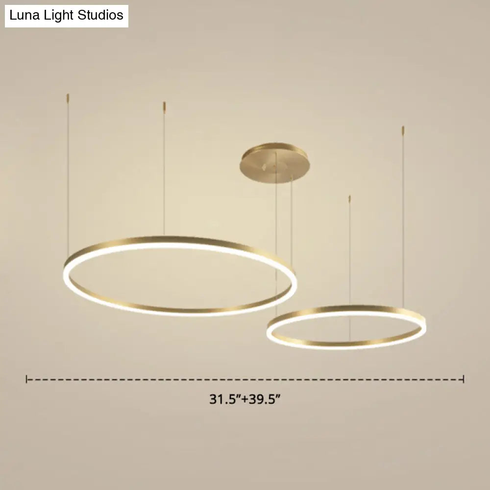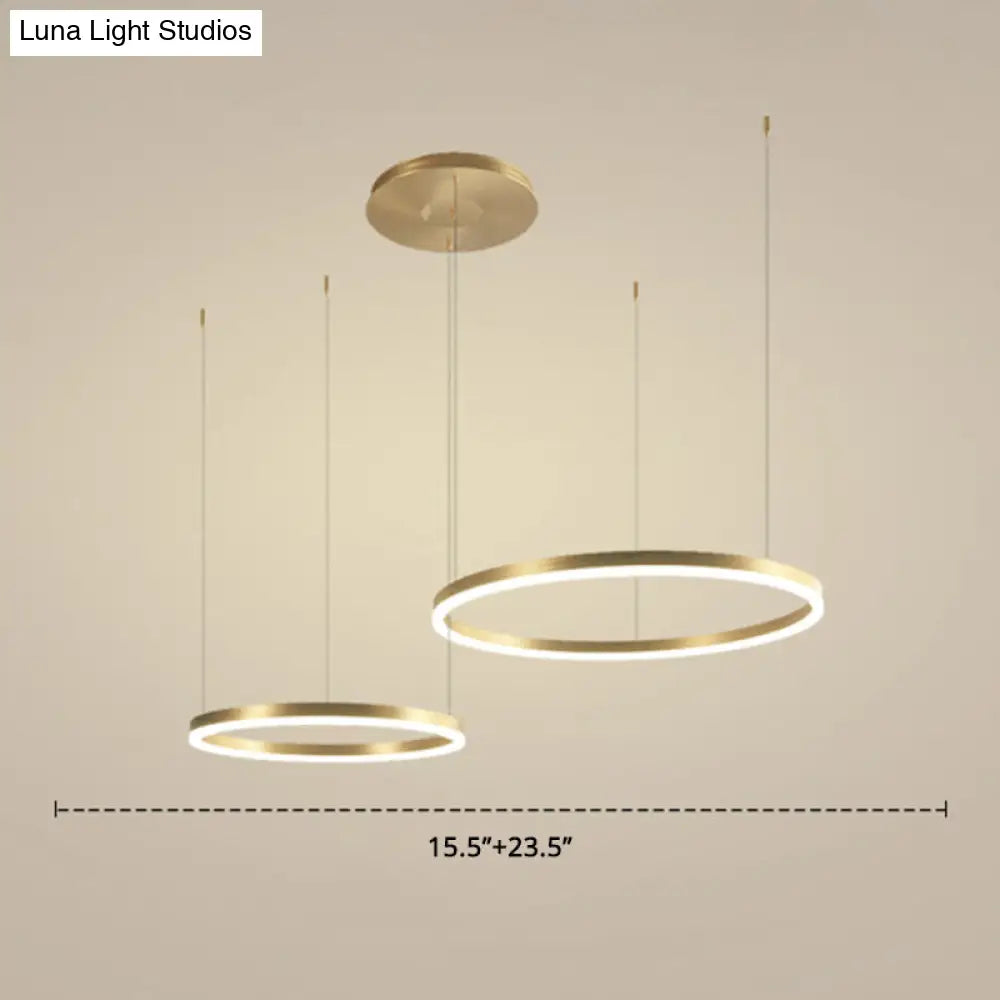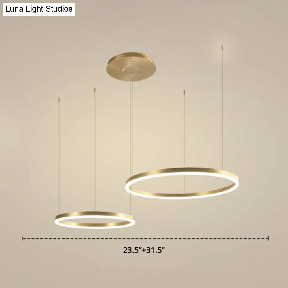 Lámpara colgante de araña contemporánea dorada de 2 capas con LED y anillo metálico