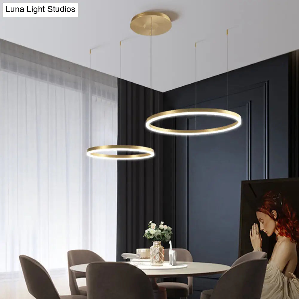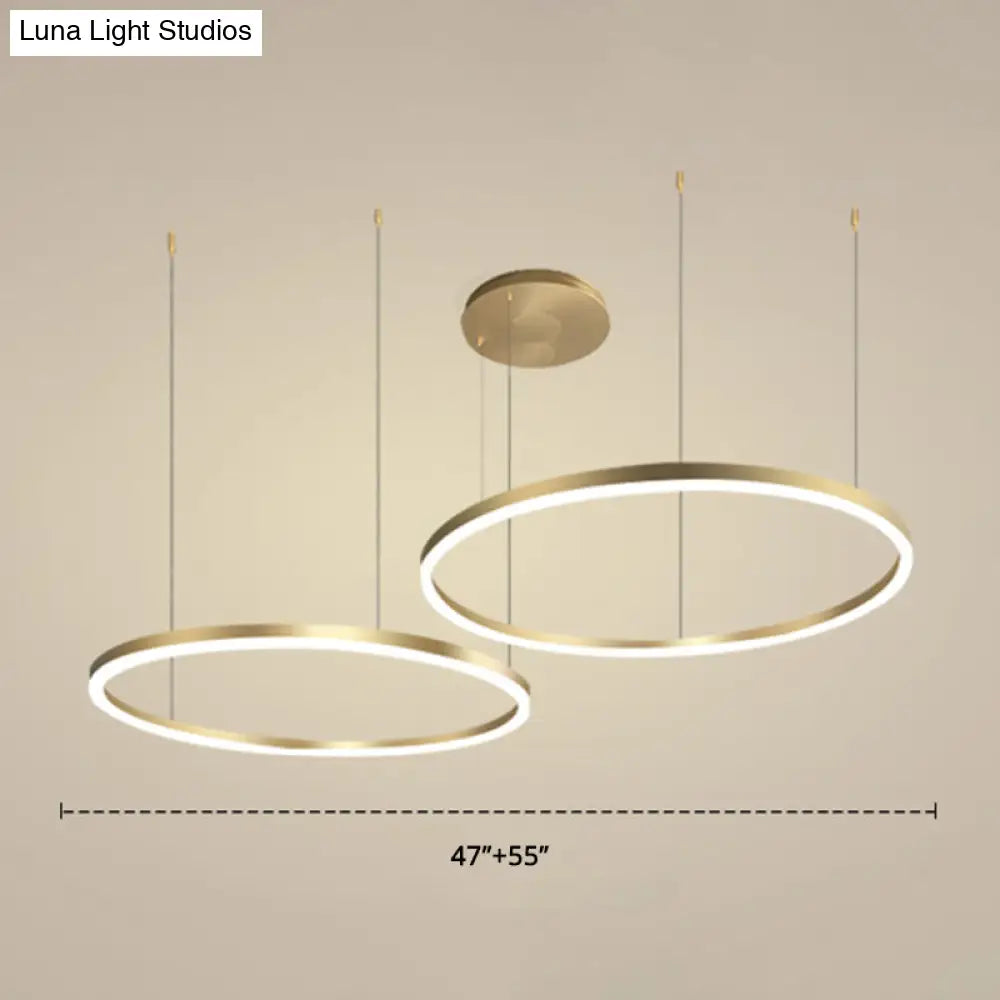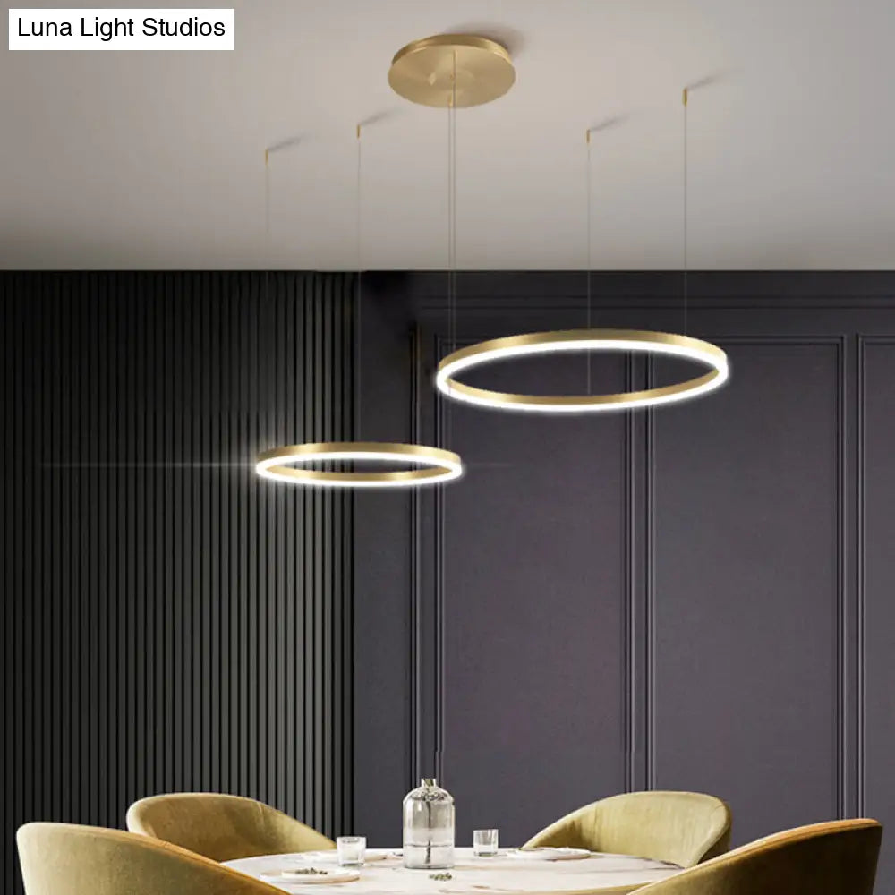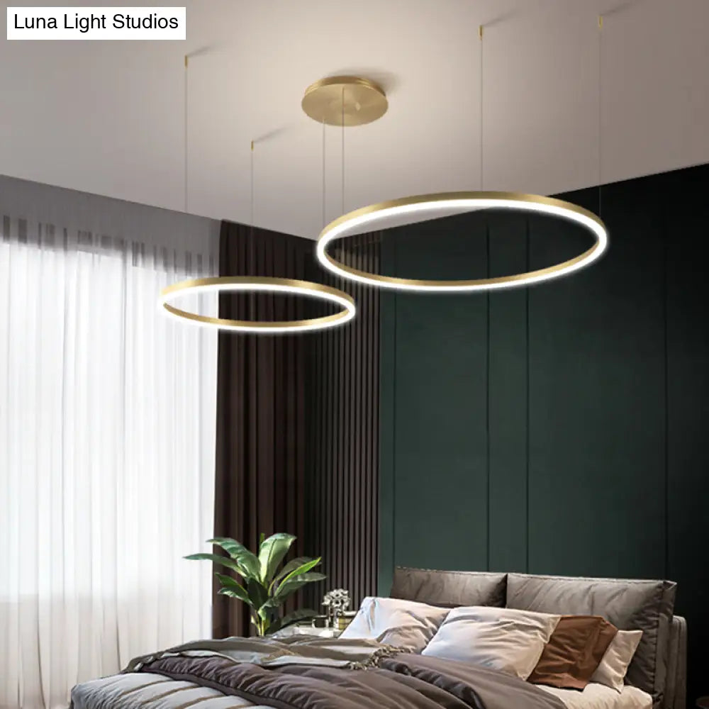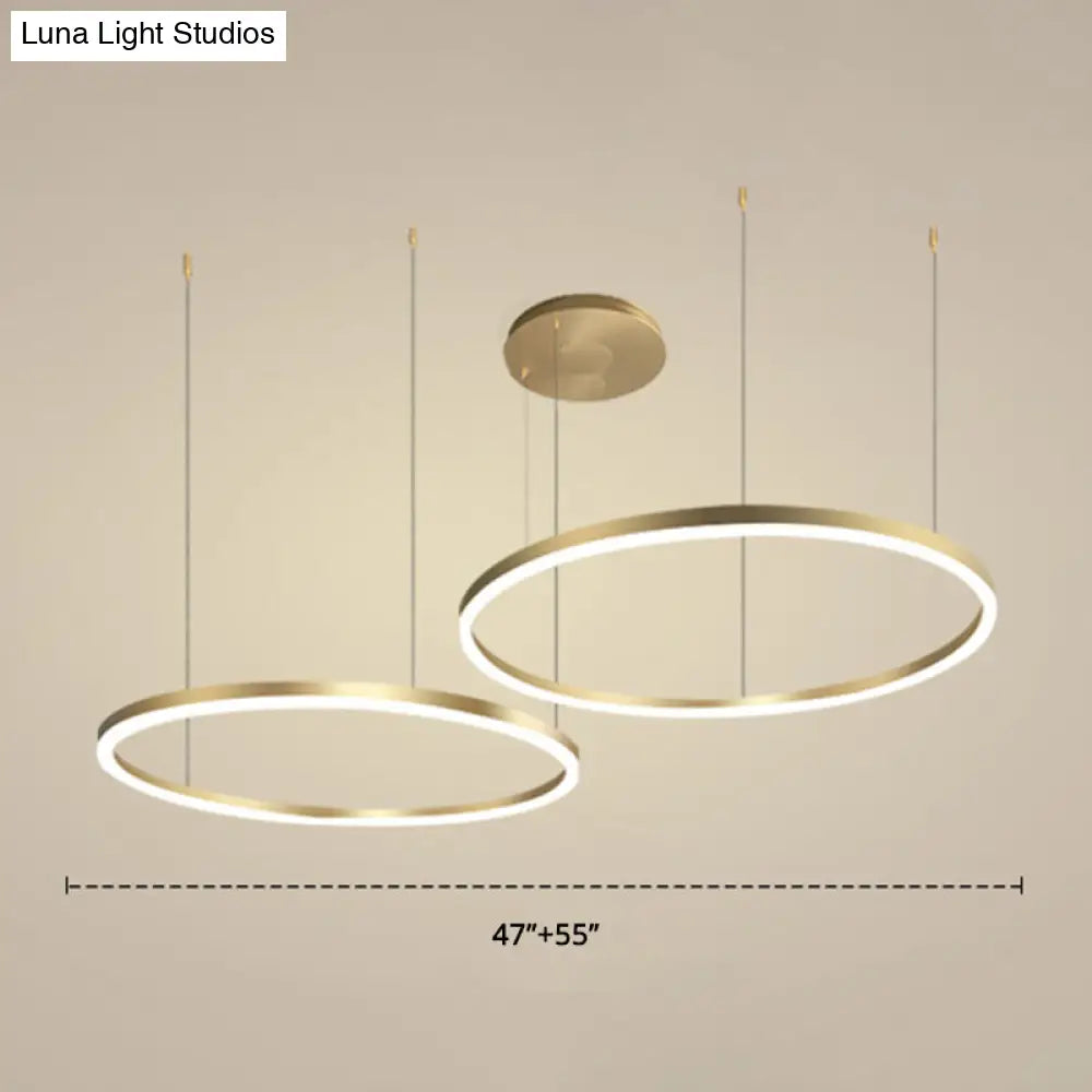 Lámpara colgante de araña contemporánea dorada de 2 capas con LED y anillo metálico