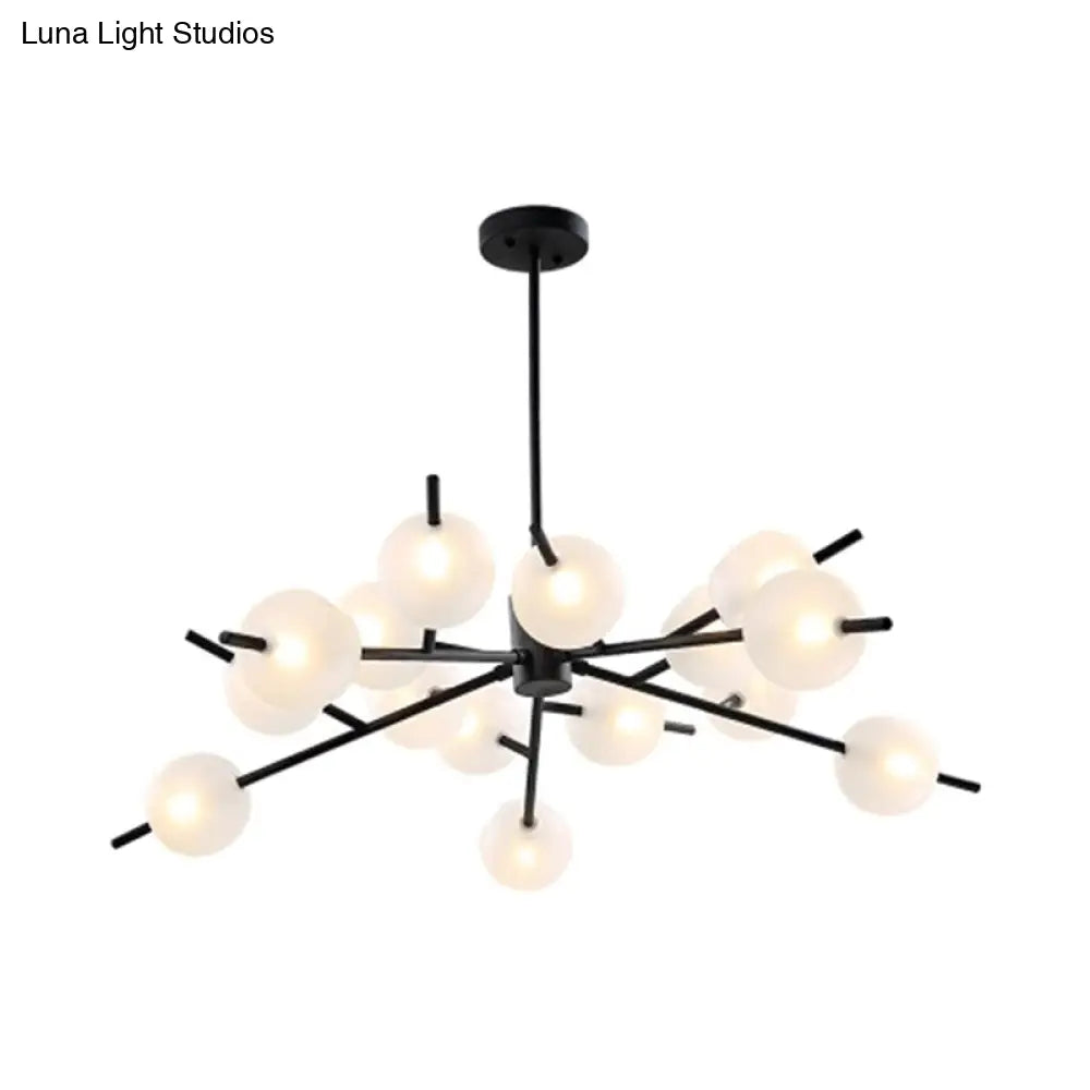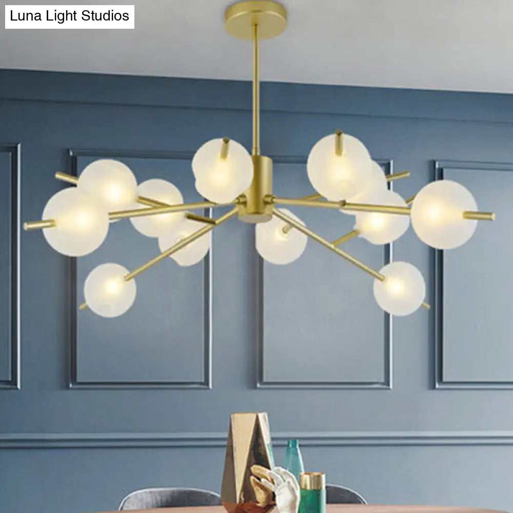 Lámpara colgante contemporánea de diseño ramificado con 15 bombillas metálicas, acabado en negro/dorado y pantallas de cristal esmerilado.