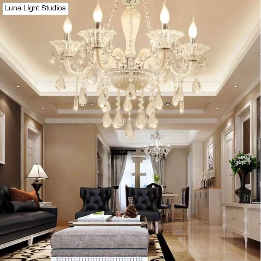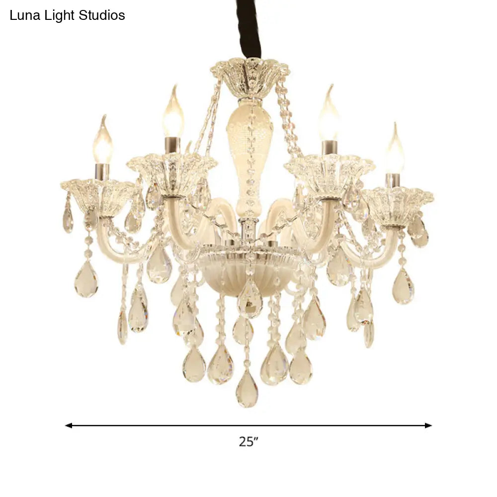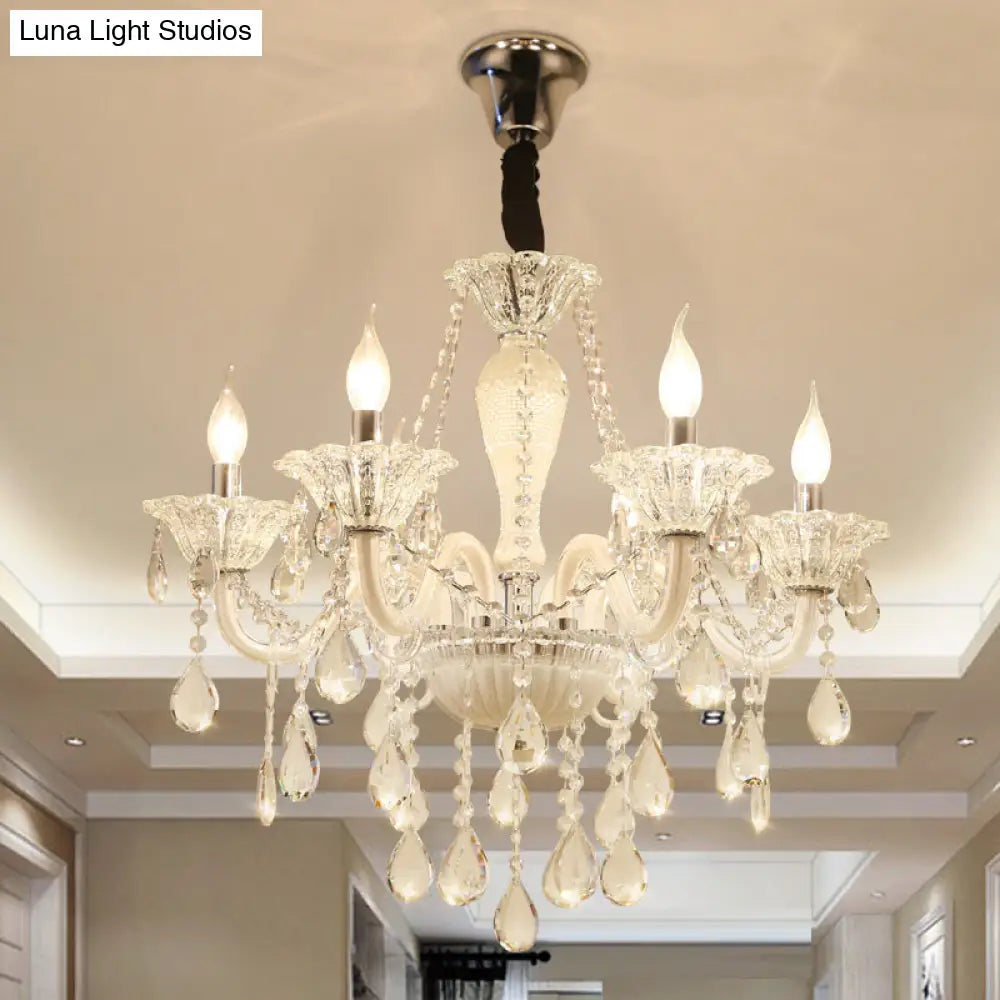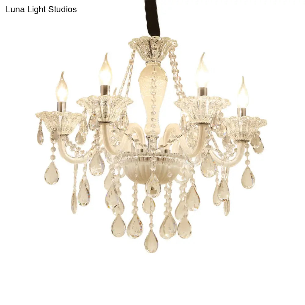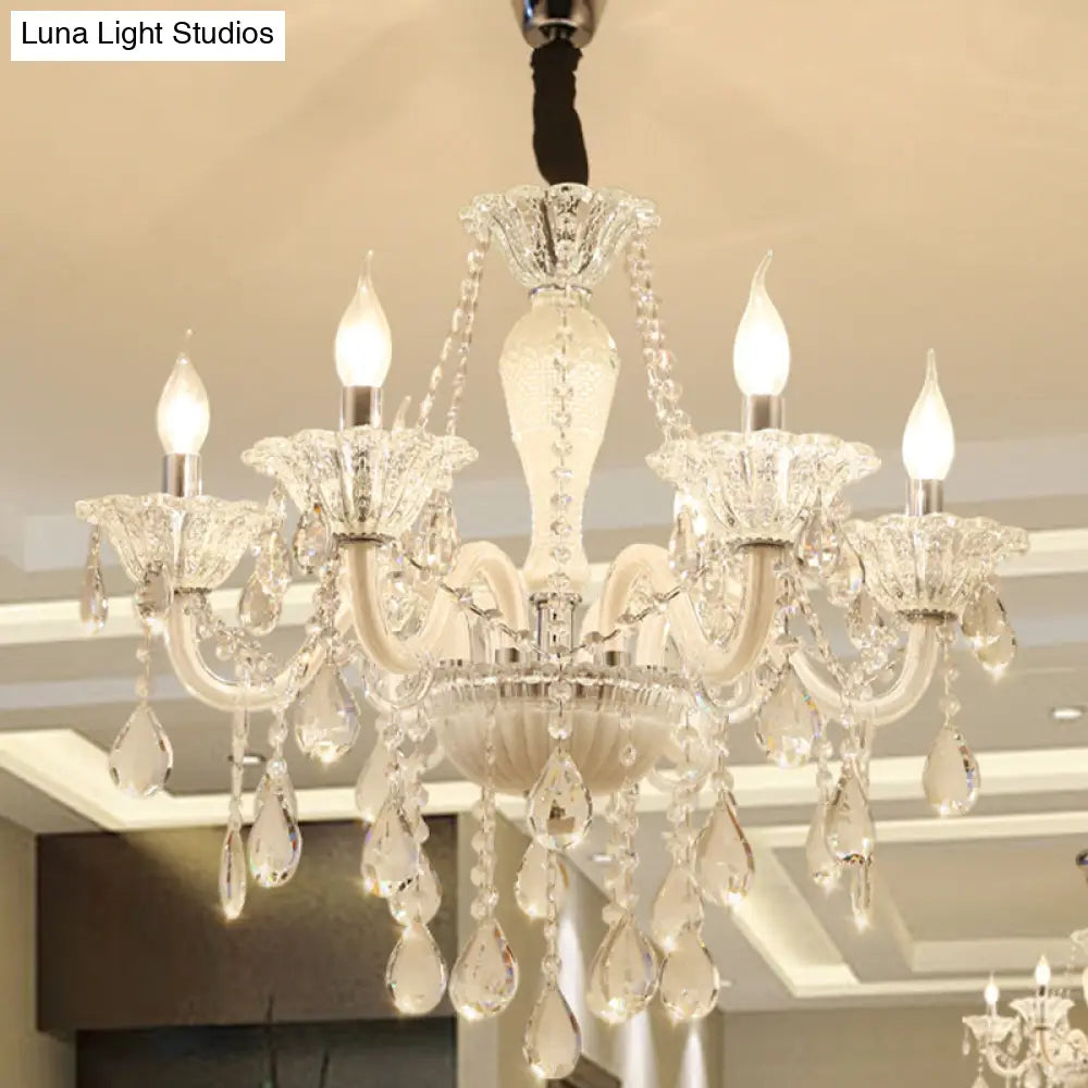 Lámpara de techo colgante blanca moderna de cristal transparente con 6 bombillas