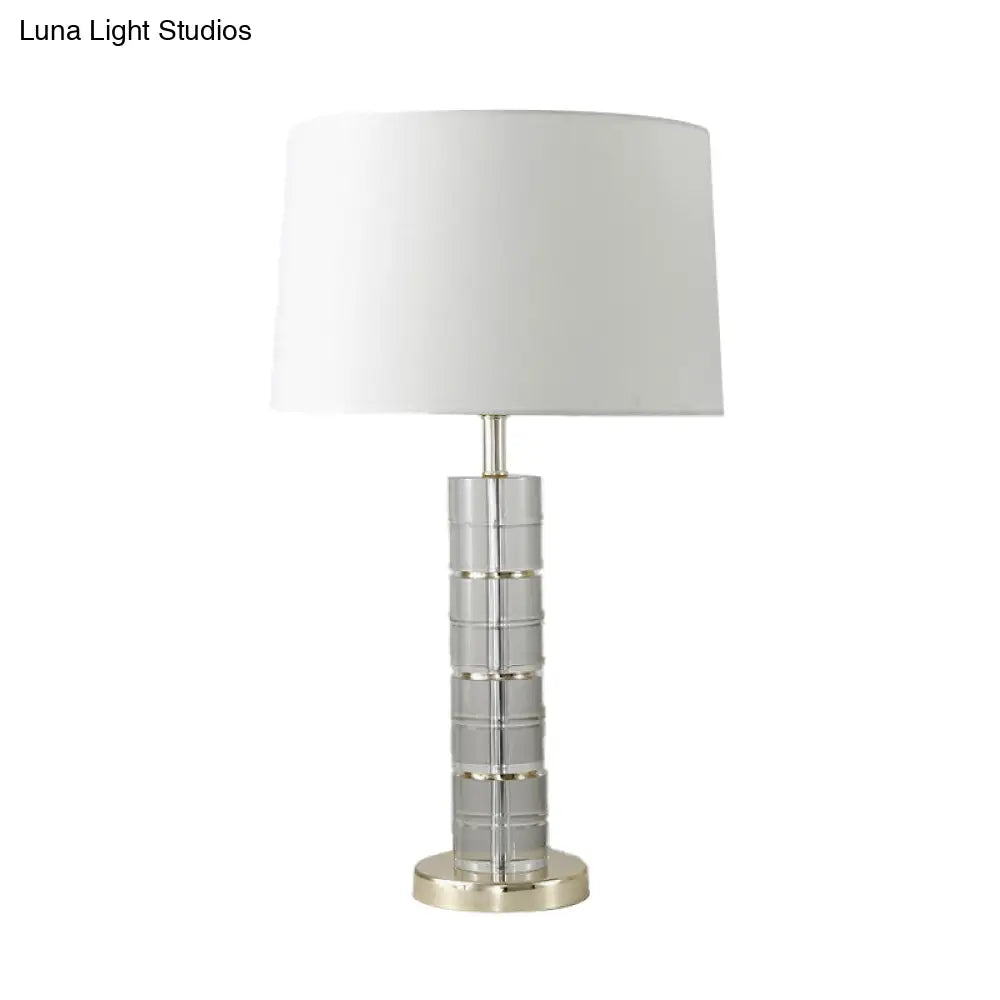 Lámpara de escritorio pequeña cromada con cristal transparente, lámpara de mesa cilíndrica moderna de tela