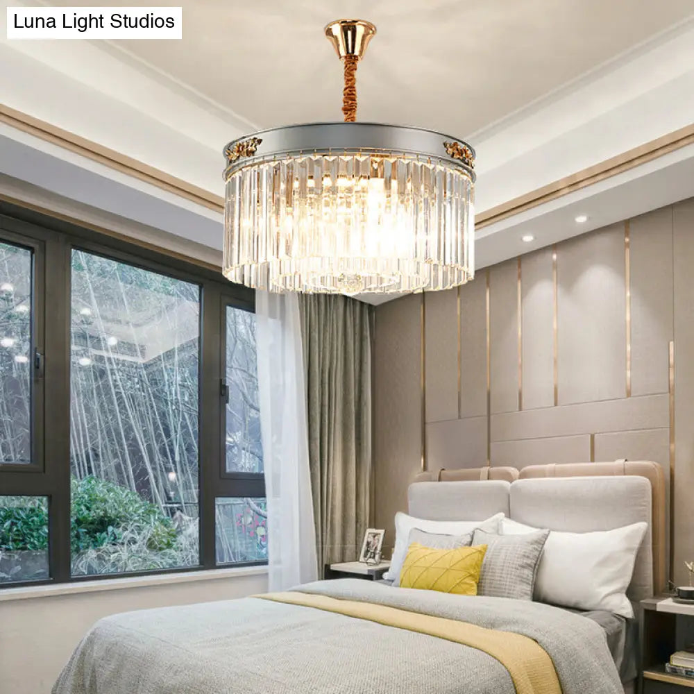 Lámpara de araña rectangular moderna tipo tambor - Cristal, 3/4 luces, colgante para comedor - 40,6 cm/49,5 cm de ancho